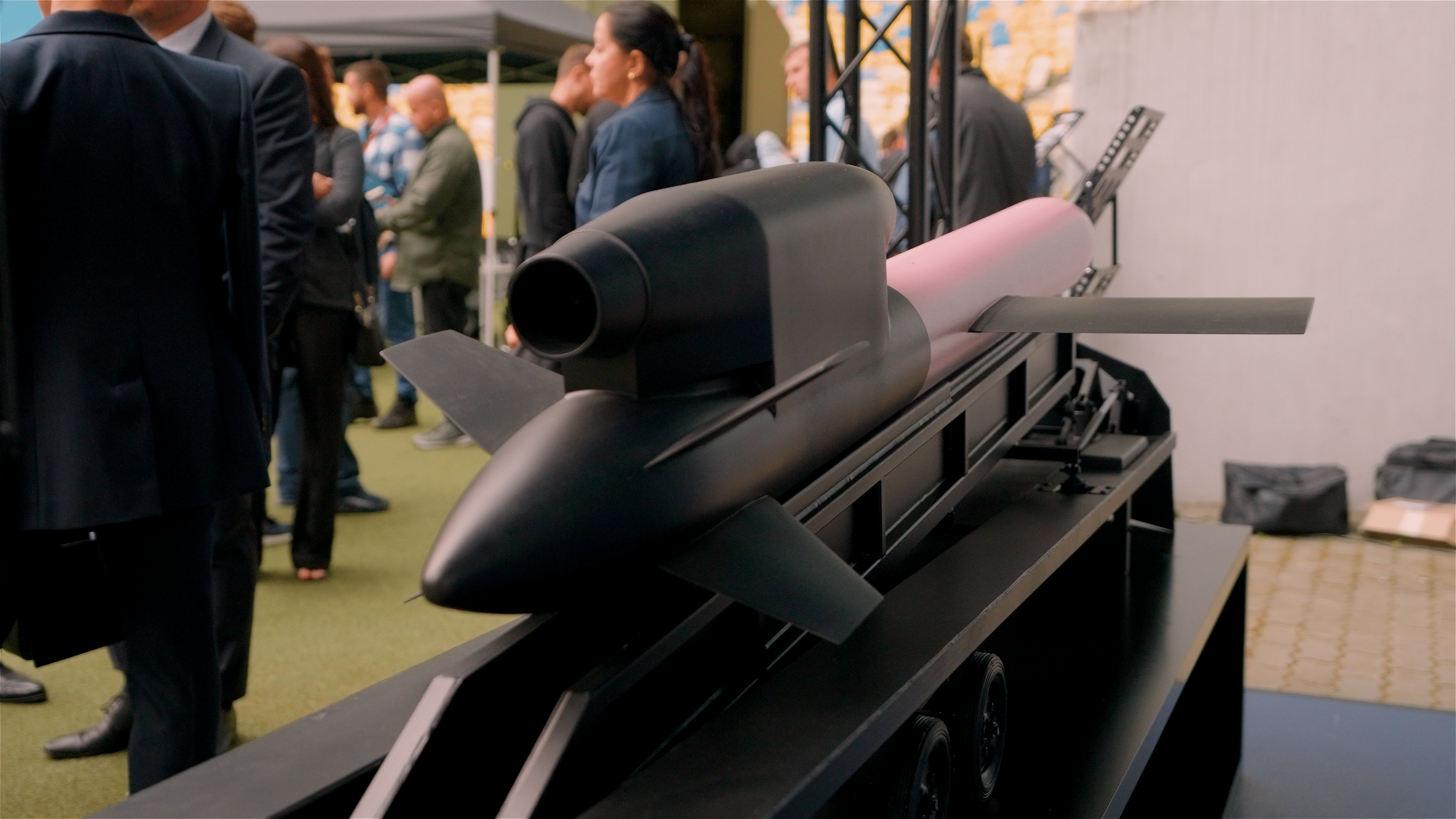 Iryna Terekh, CTO of Fire Point, delivered what many saw as the highlight of the exhibition. She unveiled Flamingo, a Ukrainian cruise missile she described as “our way to deliver big payloads on even deeper distances in a very asymmetric way in terms of price to effectiveness. Because this missile costs less than $1 million and is the biggest in the world by payload capacity and by distance as well.” Alongside Flamingo, Terekh showcased the FP-1 long range attack drone, “responsible for around 60–65 percent of the deep strike missions that are currently happening on the front line,” underscoring Fire Point’s central role in shaping Ukraine’s long-range strike capability.