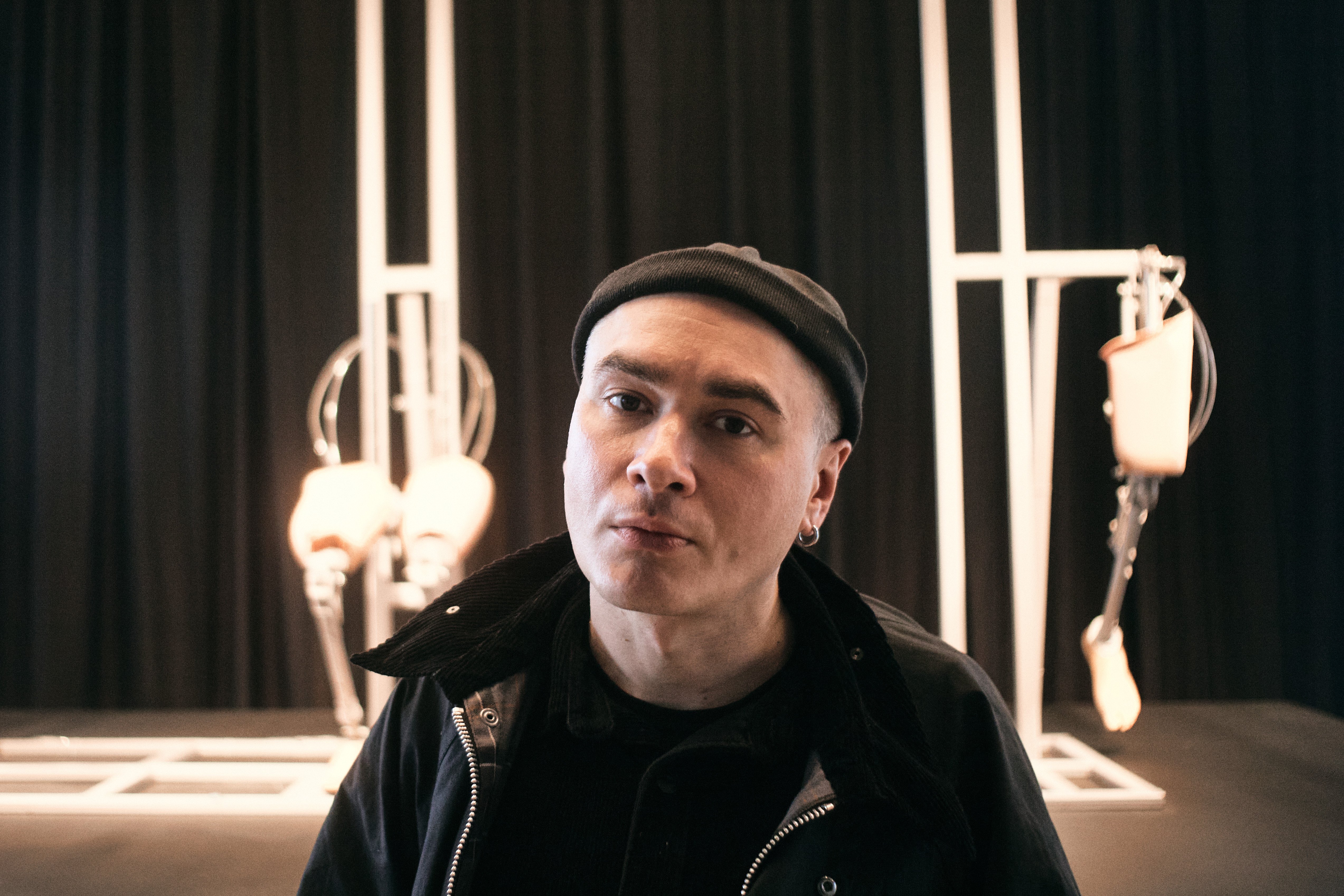 A stage with three kinetic objects made of prostheses stands in Kyiv’s Pavilion 13. Mounted on a chassis, the figures move in a robotic manner, almost hypnotically, and raise questions that audiences, both in Ukraine and abroad, may not yet be ready to answer.