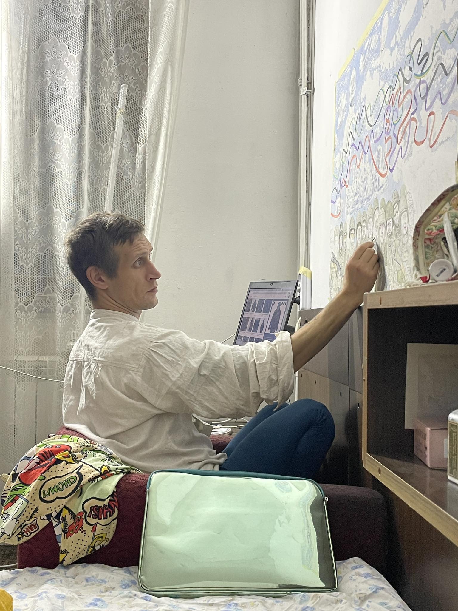 When Russia started bombing Ukrainian cities in 2022, David’s friend Nikita Kozachynskyi shared that European institutions offered Chichkan several thousand euros monthly to leave Ukraine and work for them. However, according to Kozachynskyi, Chichkan refused, believing that “making art about the war while being outside Ukraine is low behavior.”