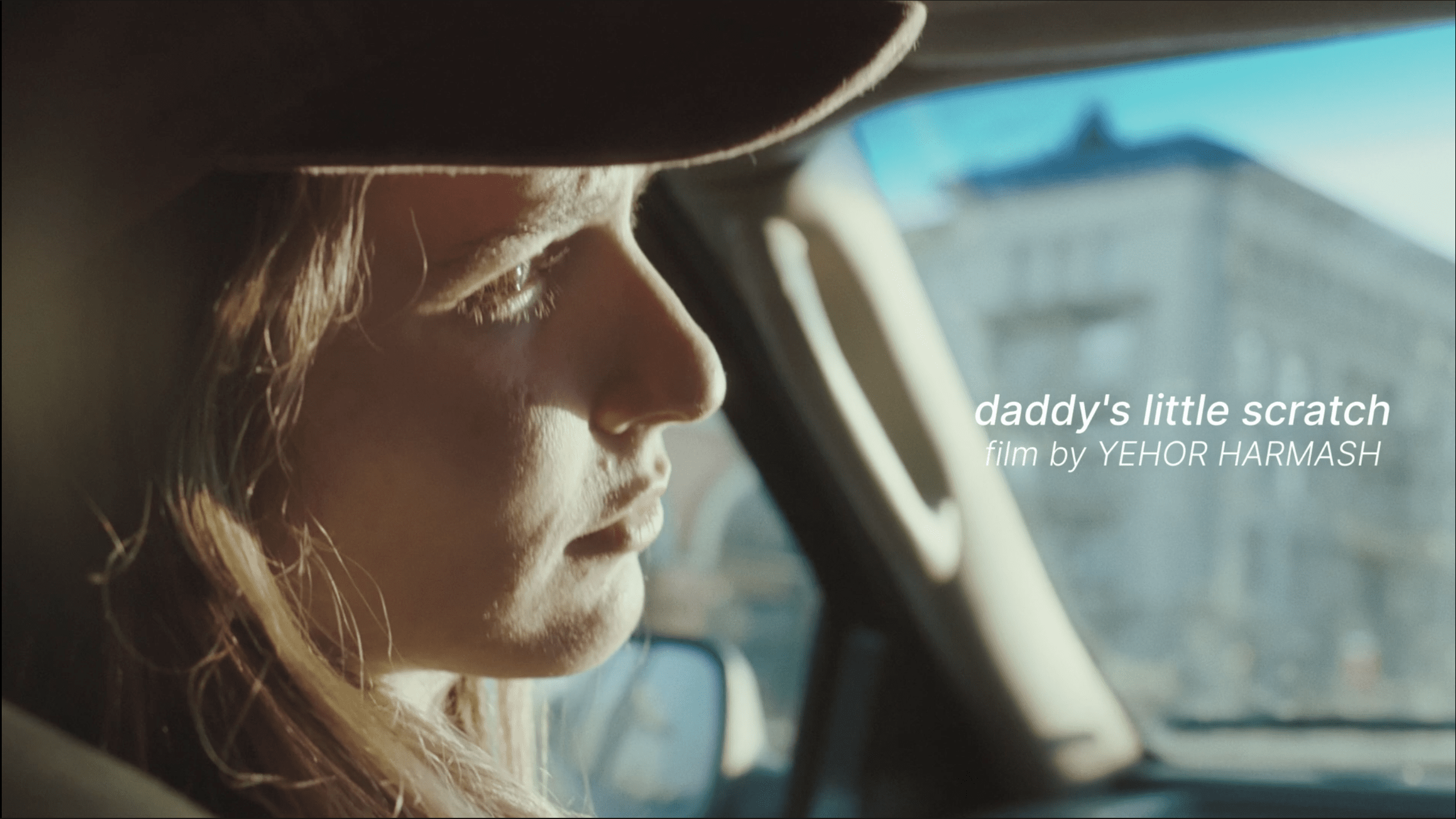 In Daddy’s Little Scratch, Yehor Harmash turns from the public to the personal. The short film follows a girl, Slava, spending a single day with her father, Roman, who is home on leave from the front. They travel to return an expensive carpet he bought for her, a simple errand that becomes a study in estrangement.