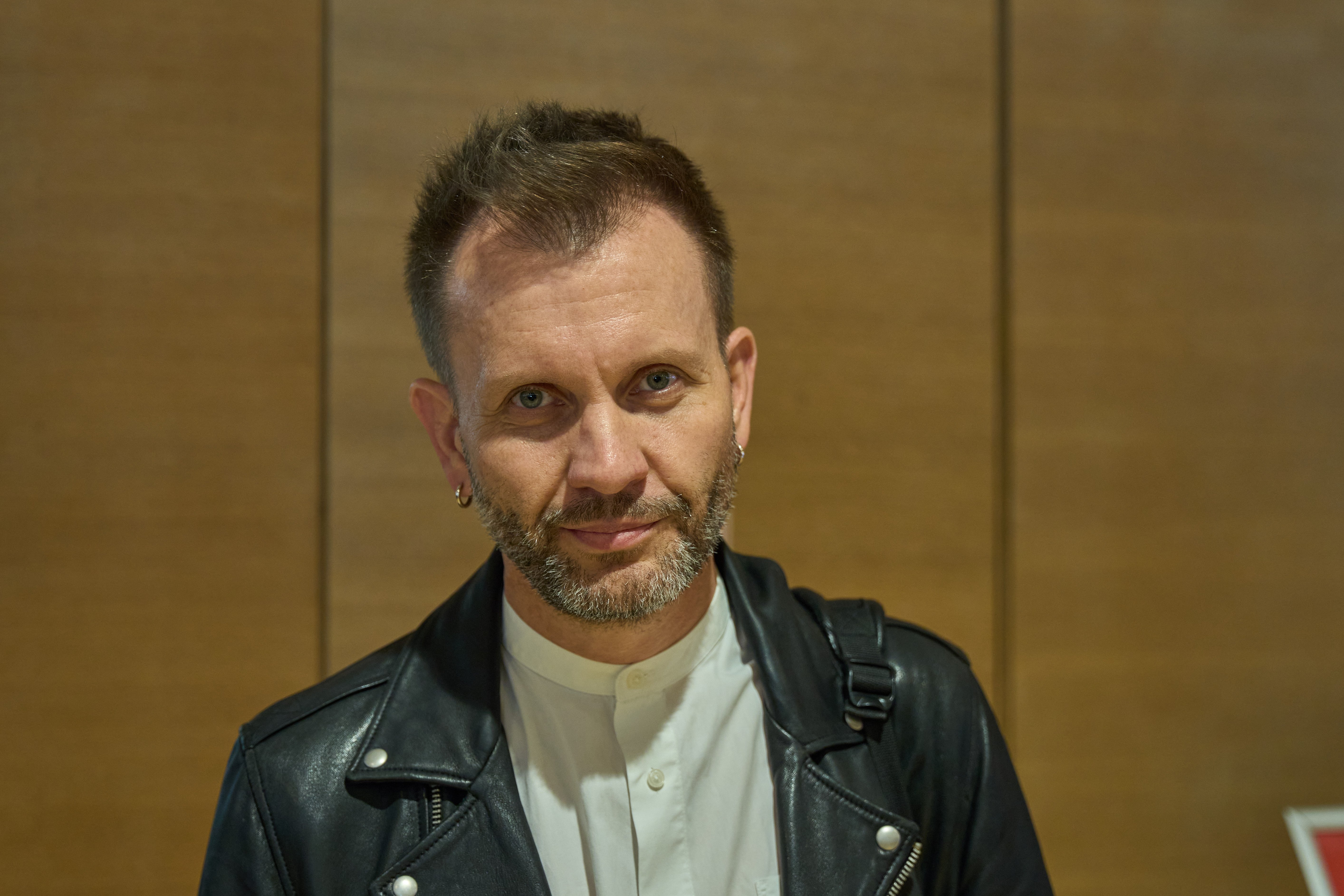 He’s in a leather jacket, slightly punk, sporting a small earring. “Everything works according to a triangular formula: filmmaker, screen, and audience,” he told me. “Right now, the audience has dropped out, leaving only a big idea. This is why cinema is in a kind of crisis, films are being made and shown without a clear audience.”