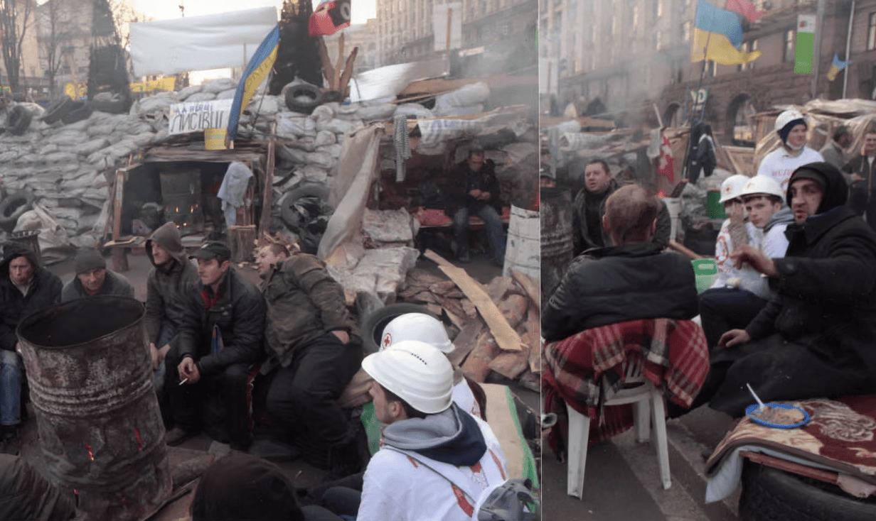 Laurie Hurwitz: We made the conscious decision to remove more playful series, such as Football, and instead foreground The Theater of War, photographed in Kyiv in December 2013 during the early days of the Maidan protests. These images, charged with a palpable tension and almost theatrical composition, resonate with a foreboding anticipation of the conflict to come.