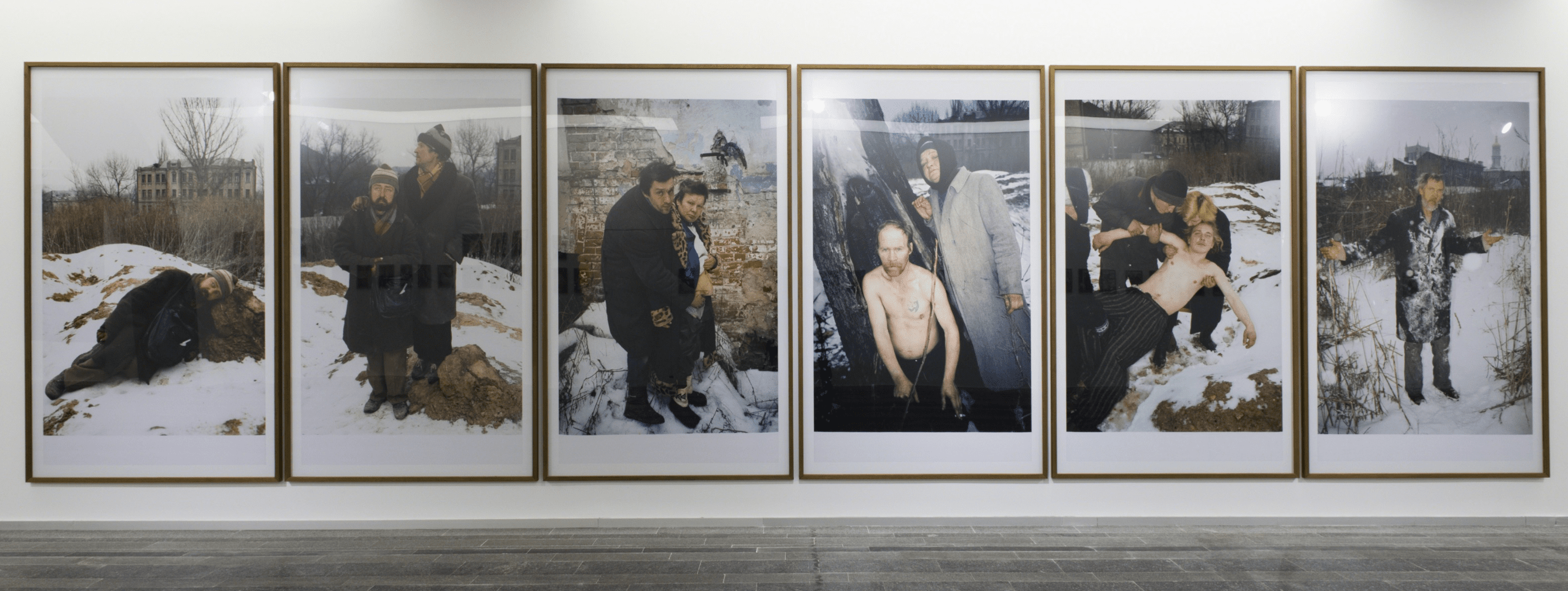 Mikhailov’s work inherently resists conventional storytelling; it is cyclical, marked by recurring motifs and an interrogation of its own internal logics. Thus, while chronology provides a structural framework, the exhibition embraces shifts in tone, medium, and perspective, fostering a dynamic dialogue between works. Central themes—heroism, failure, power, the body, identity, absurdity, ideology—recur throughout, not as definitive conclusions but as open-ended provocations that invite sustained contemplation. In this way, the exhibition operates as both a temporal sequence and a constellation of moments—fragmented yet interconnected—that collectively evoke the complexity, contradictions, and richness of Mikhailov’s visionary practice.