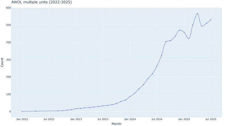 Frontelligence Insight señala que algunas brigadas logran recuperar a la mayoría de los desertores, pero que el número total sigue aumentando.
