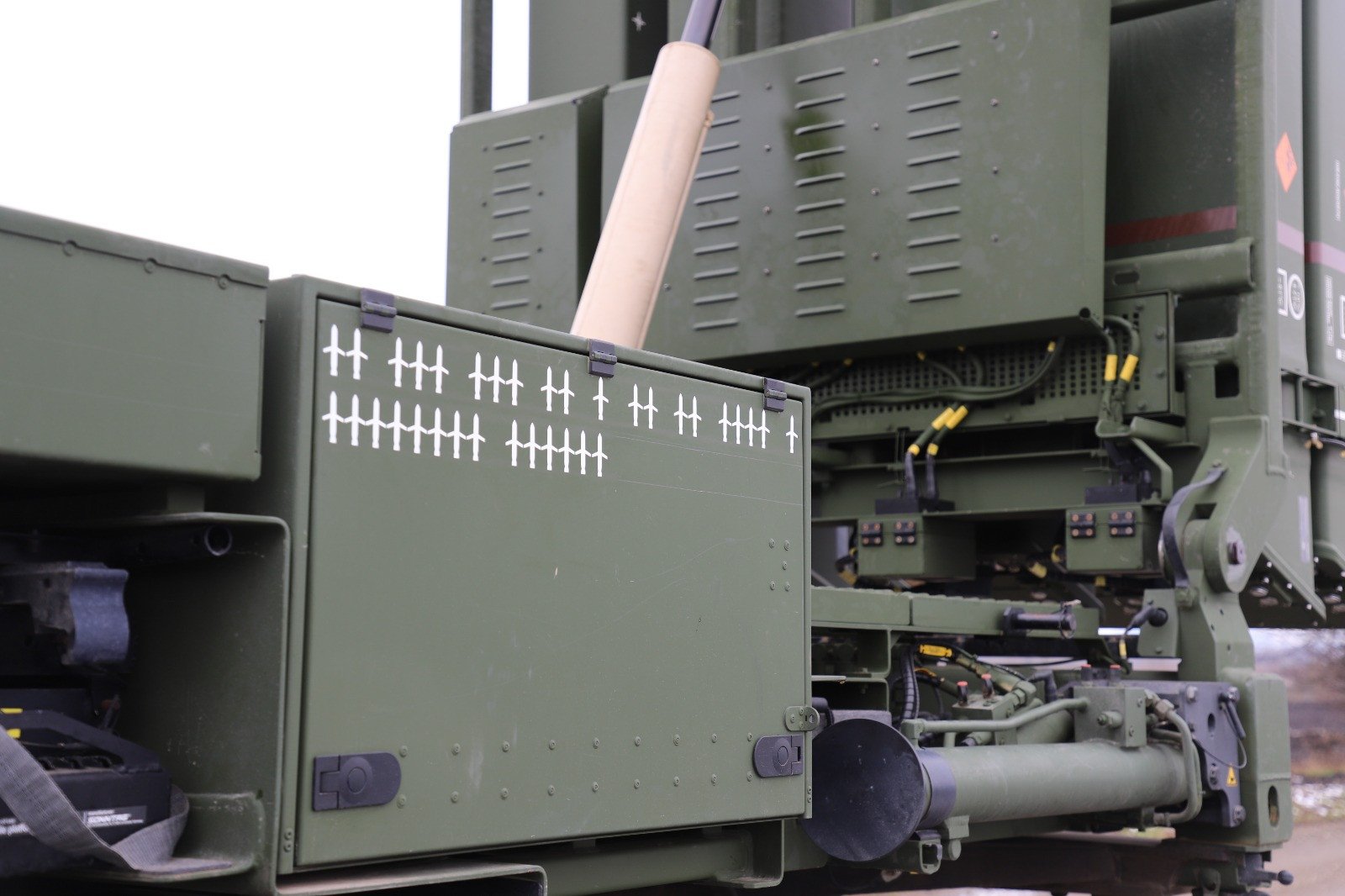 La unidad militar marca cada compromiso exitoso en el propio lanzador. Un sistema IRIS-T lleva ahora ocho marcas consecutivas, que representan la interceptación de ocho misiles durante un solo combate.