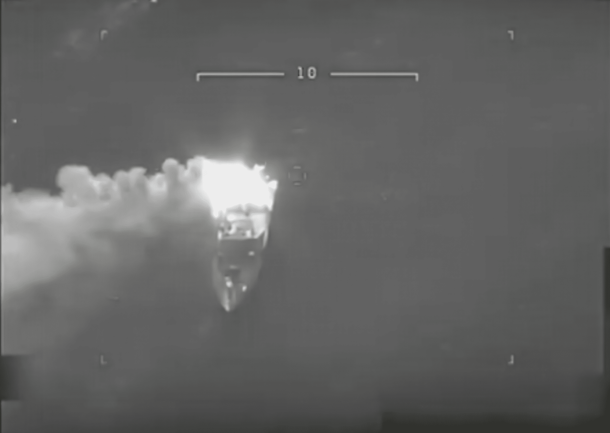 En el vídeo se ve cómo la lancha se aproxima a una zona costera poco profunda antes de ser alcanzada y luego desintegrarse en el agua.