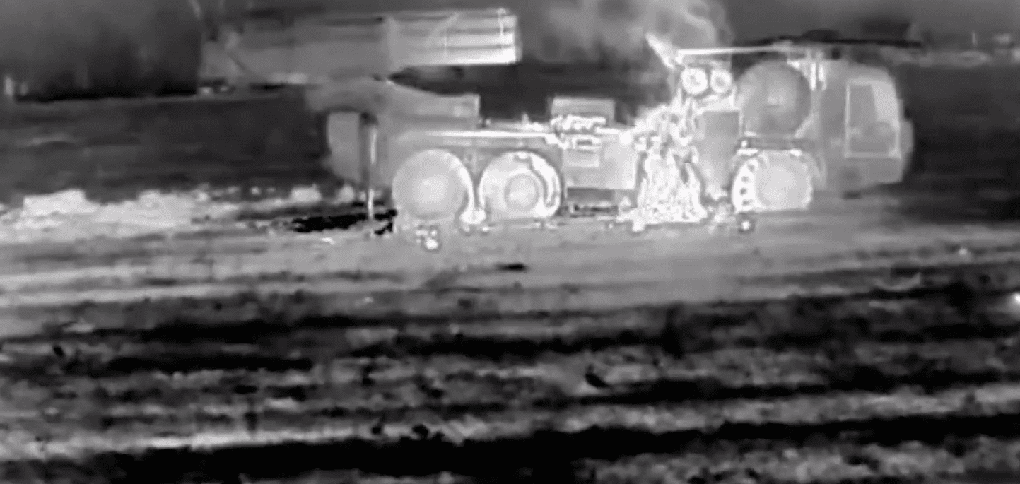 La caza de drones que duró meses termina con un ataque explosivo al lanzador ruso Uragan-1, video