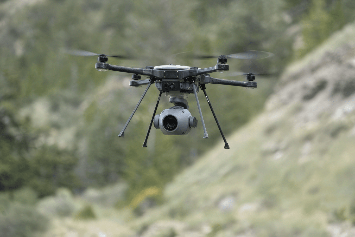 El dron utilizado en la prueba fue el FLIR SkyRaider, una plataforma cuadricóptera diseñada principalmente para el reconocimiento aéreo y el transporte de carga útil. El SkyRaider, fabricado por Teledyne FLIR Defense, es capaz de transportar hasta 2 kg de carga útil y puede permanecer en el aire durante aproximadamente 50 minutos en condiciones óptimas. Se suele utilizar para tareas de inteligencia, vigilancia y reconocimiento (ISR), más que para el combate directo.