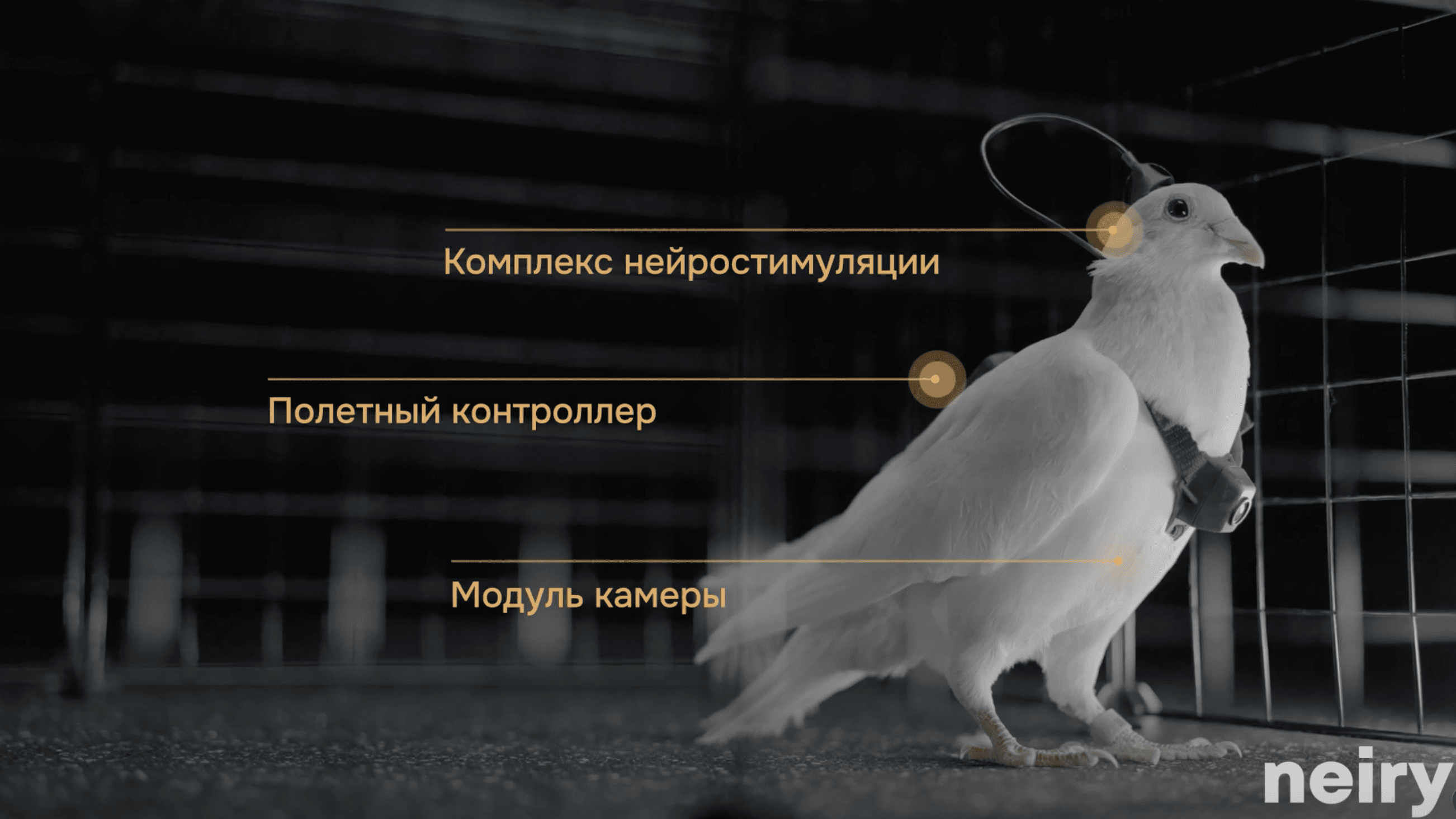 El fundador de Neiry, Alexander Panov, afirmó que el sistema actual se está probando con palomas, pero puede adaptarse para su uso con otras especies. "Actualmente, la solución funciona con palomas, pero cualquier ave puede ser portadora. Para transportar más carga útil, planeamos utilizar cuervos para monitorear instalaciones costeras (gaviotas) y, para grandes áreas marinas, albatros".
