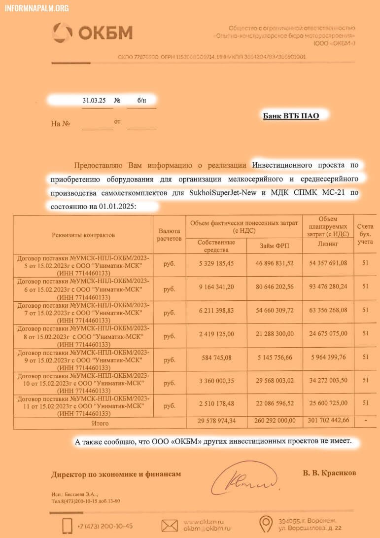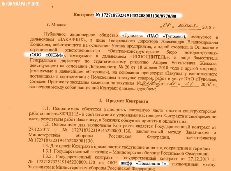 Un contrato estatal entre Tupolev y OKBM clasifica estos detalles como secretos y permite su rescisión en caso de violación de la confidencialidad. Otros acuerdos describen las etapas de producción previstas entre 2024 y 2027.