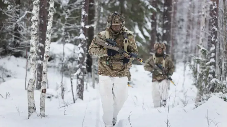 Soldados británicos de la Compañía C, 3.er Batallón de Fusileros (3 RIFLES) se han unido a la Brigada Kainuu de Finlandia para un entrenamiento de guerra invernal en el área de entrenamiento de Vuosanka, a unos 48 kilómetros de la frontera con Rusia, según informó el Ejército Británico el 10 de diciembre.