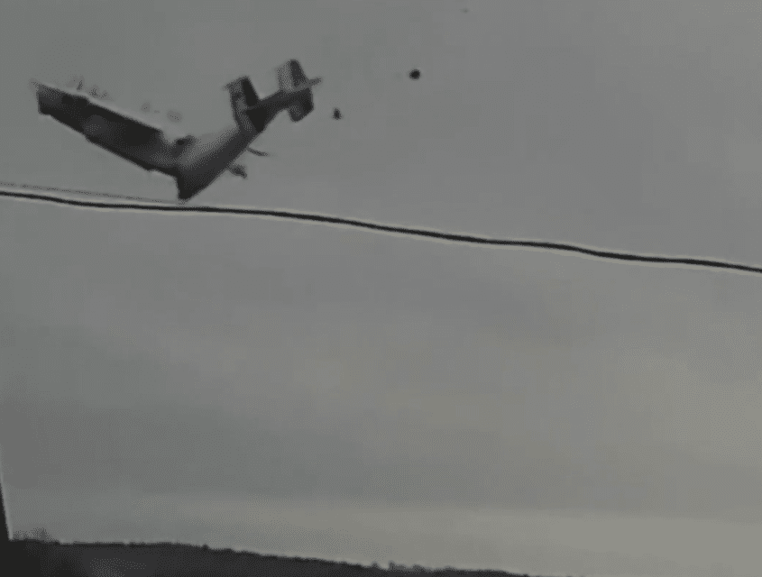 Las imágenes capturan el momento en que el enorme avión pierde rápidamente altitud y luego se desintegra en vuelo, dividiéndose en dos secciones antes del impacto.