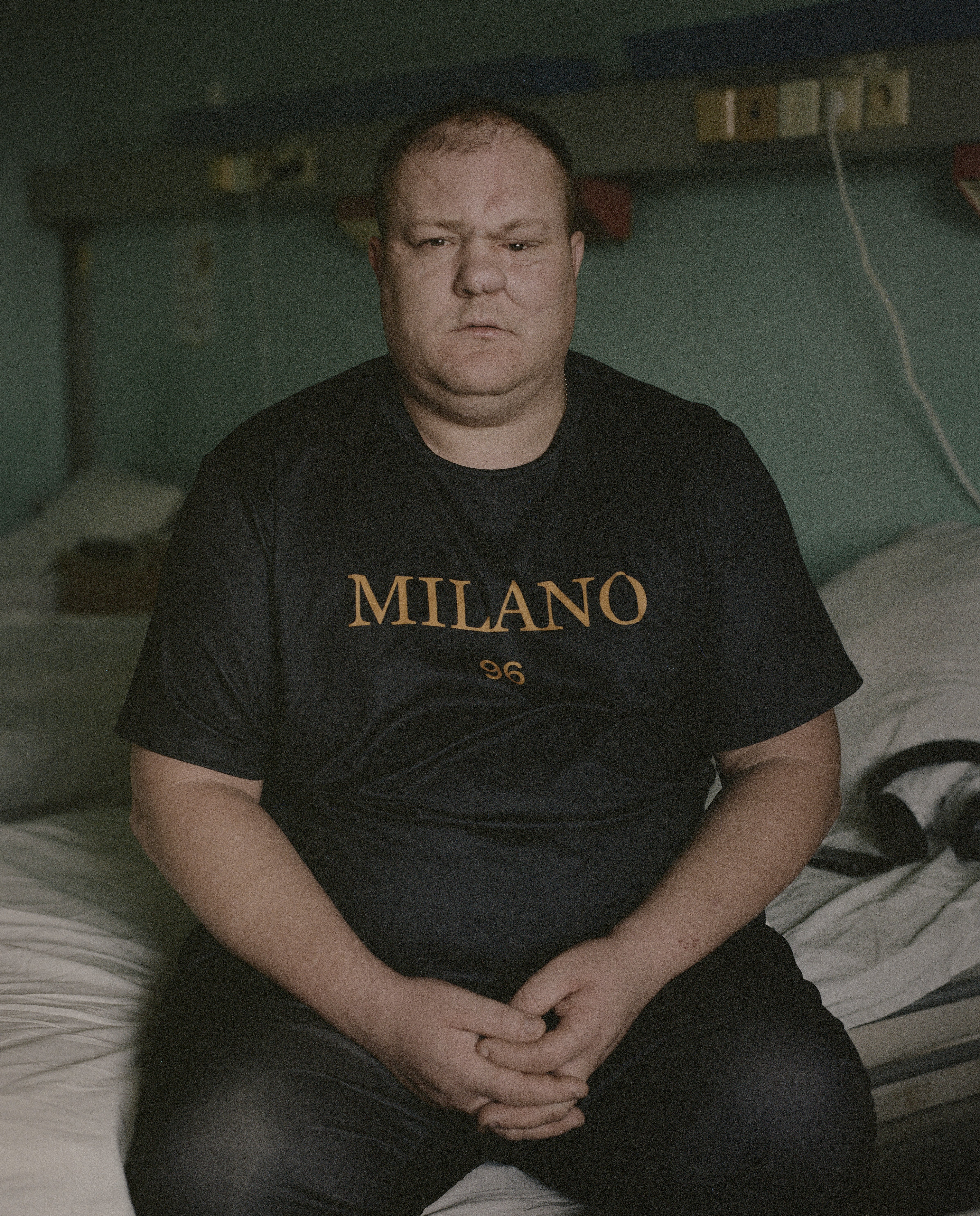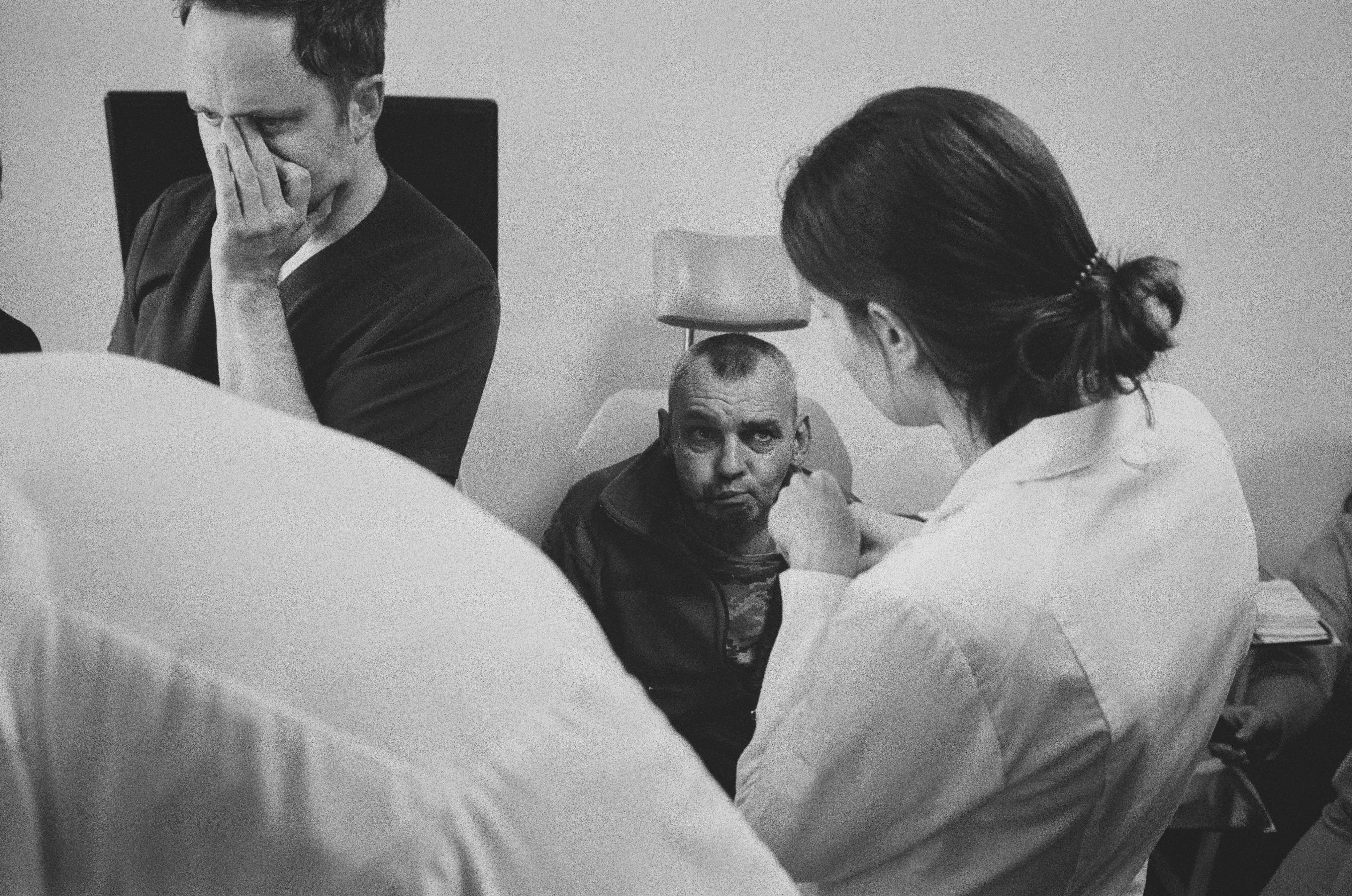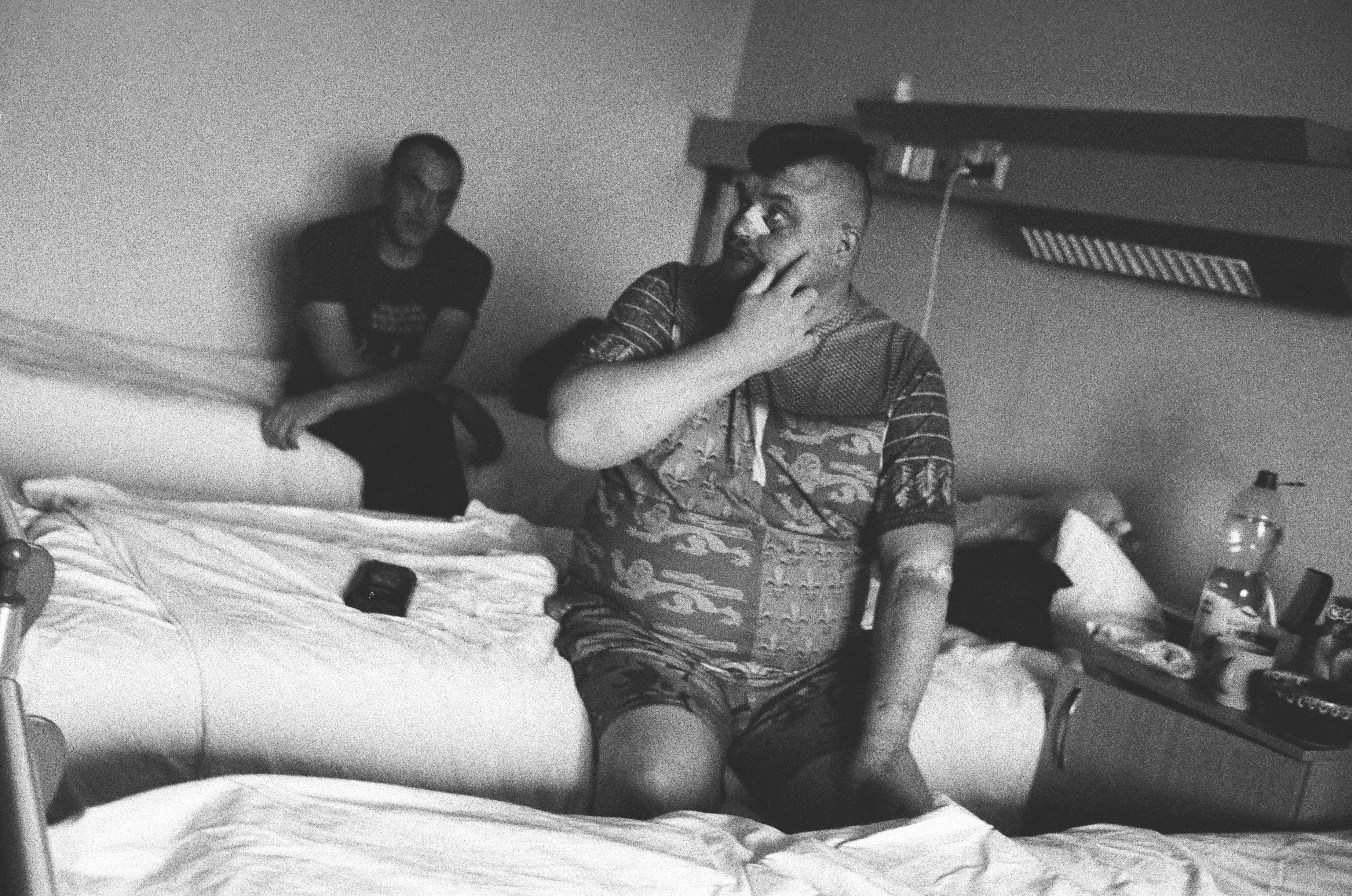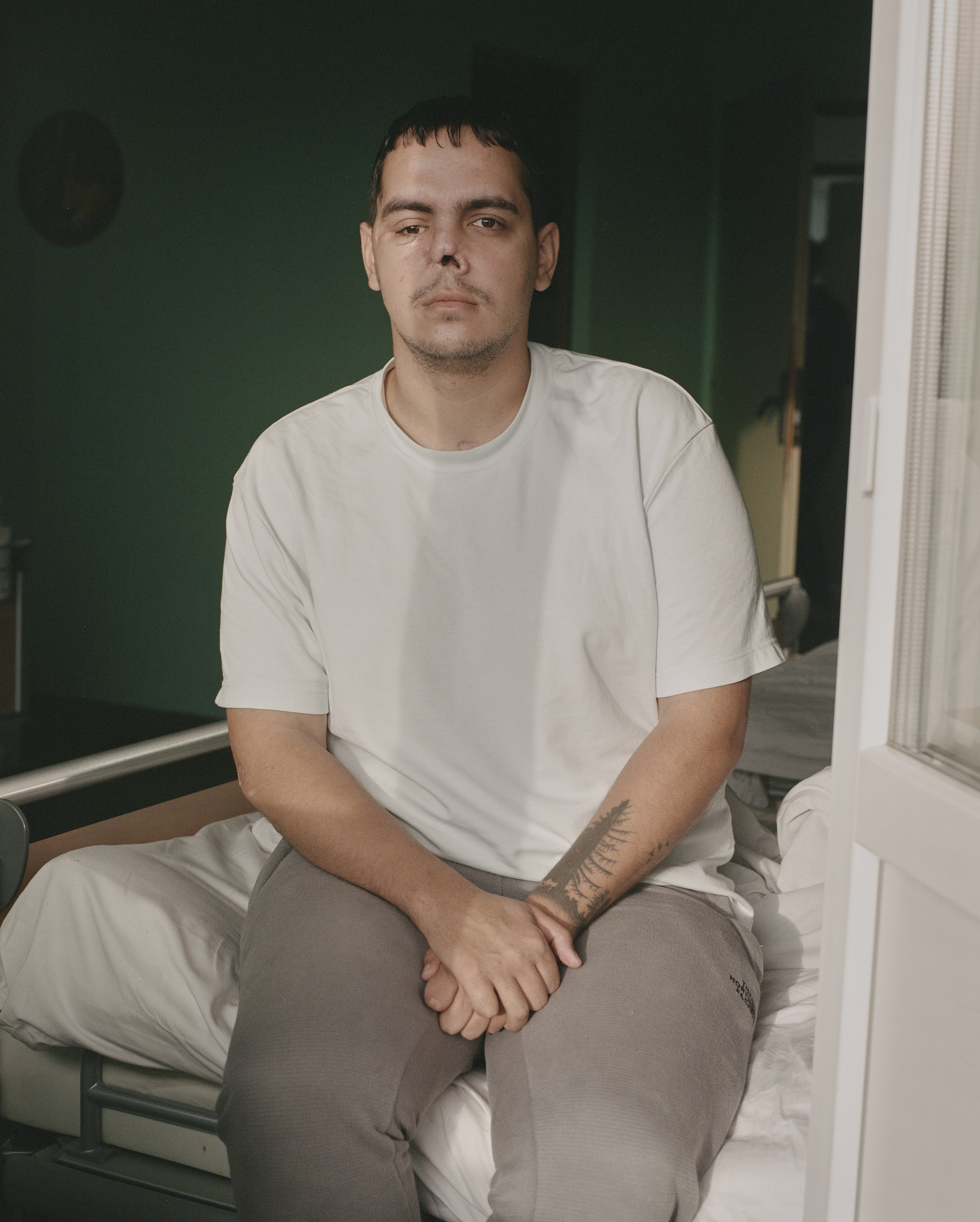Artem esperó ser admitido en la misión durante unos seis meses, alegando que su esposa se encargaba de todas las tareas administrativas. Mientras tanto, le pide que no venga al hospital a verlo. Tras ser examinado por los cirujanos de la misión "Face the Future", Artem comenta: "Me ofrecieron algunas opciones. Quieren corregir este defecto". Señaló el agujero en su cara, cubierto con una venda; había perdido parte del hueso. "Lo más probable es que me rompan la nariz. A la naturaleza no le gusta el vacío; cuando apareció el agujero, se curó. También me ofrecieron levantarme el ojo. Verá, está hundido". En la cama junto a la de Artem está Vadym Korsun. Originario de Khmelnytsky, fue reclutado y se unió a la 82.ª Brigada. En 2023, las tropas rusas lo hirieron en la región de Zaporizhzhnia.