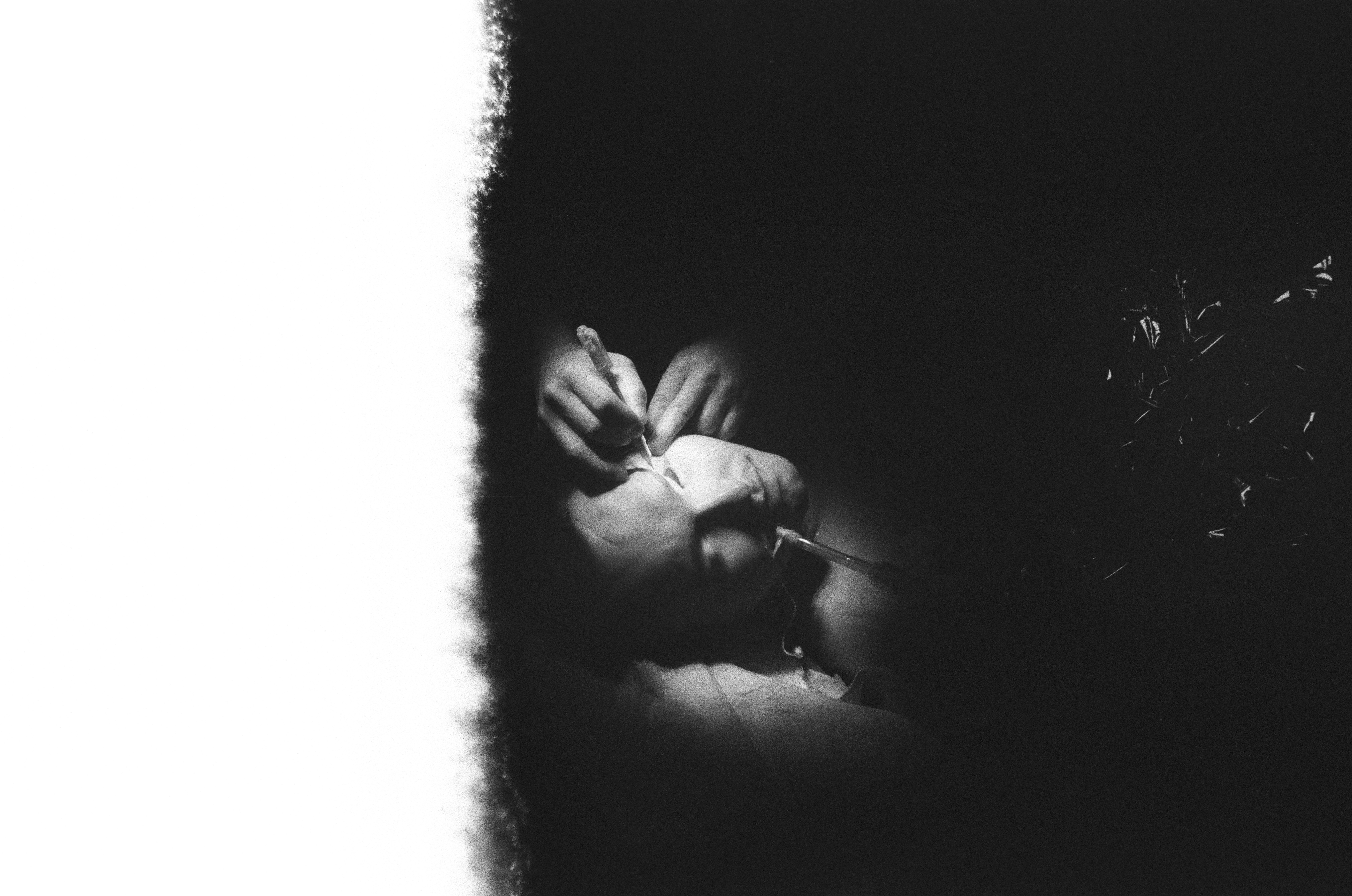 “Esta primavera, me extrajeron cartílago de otra costilla, me lo implantaron y también me quitaron piel de la cabeza. Ahora, me quitarán el tejido sobrante”, dice Vadym. En el pasillo, se encuentra con uno de los médicos. El médico le dice que su cirugía será más tarde esa noche, después de que terminen los casos más complicados.