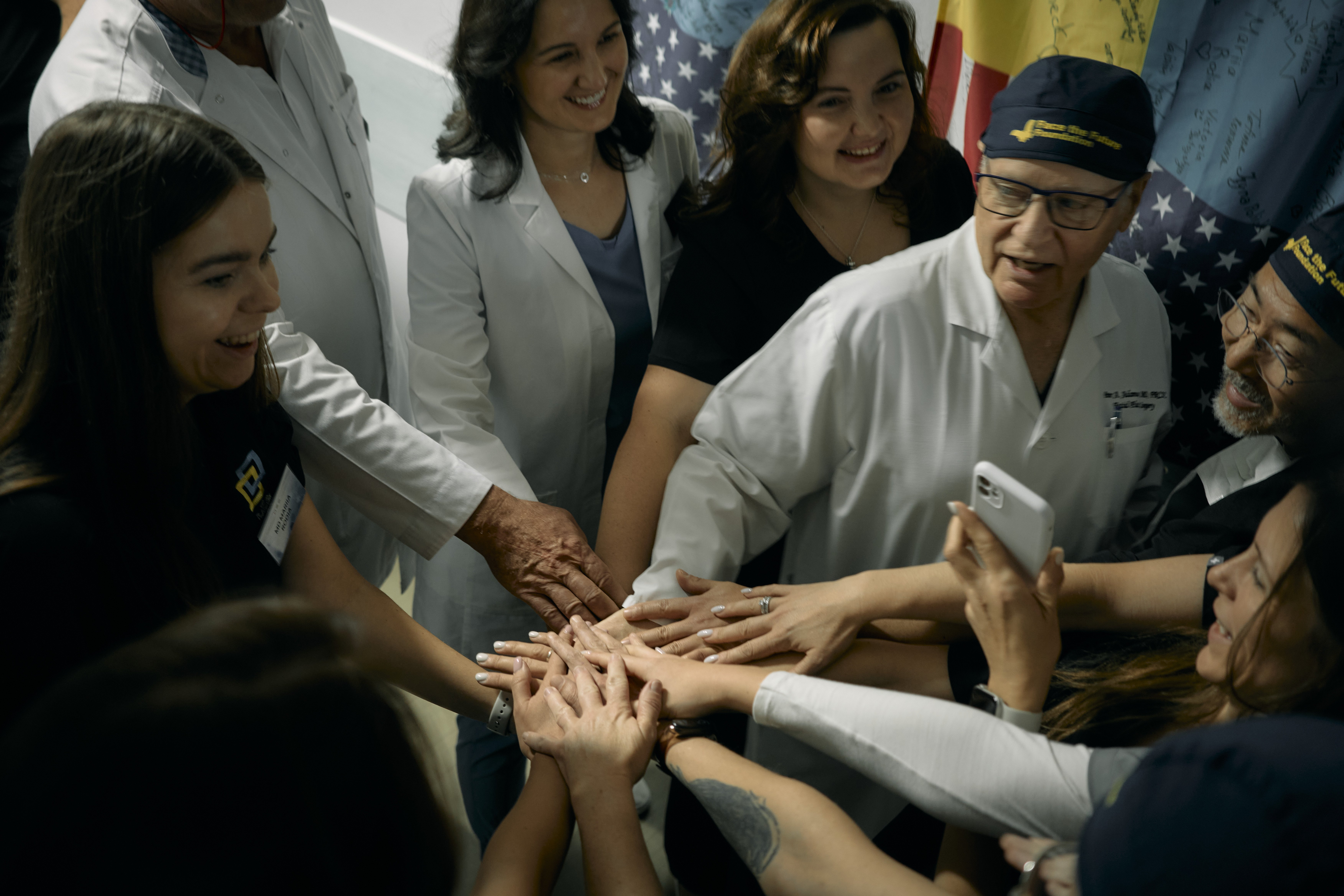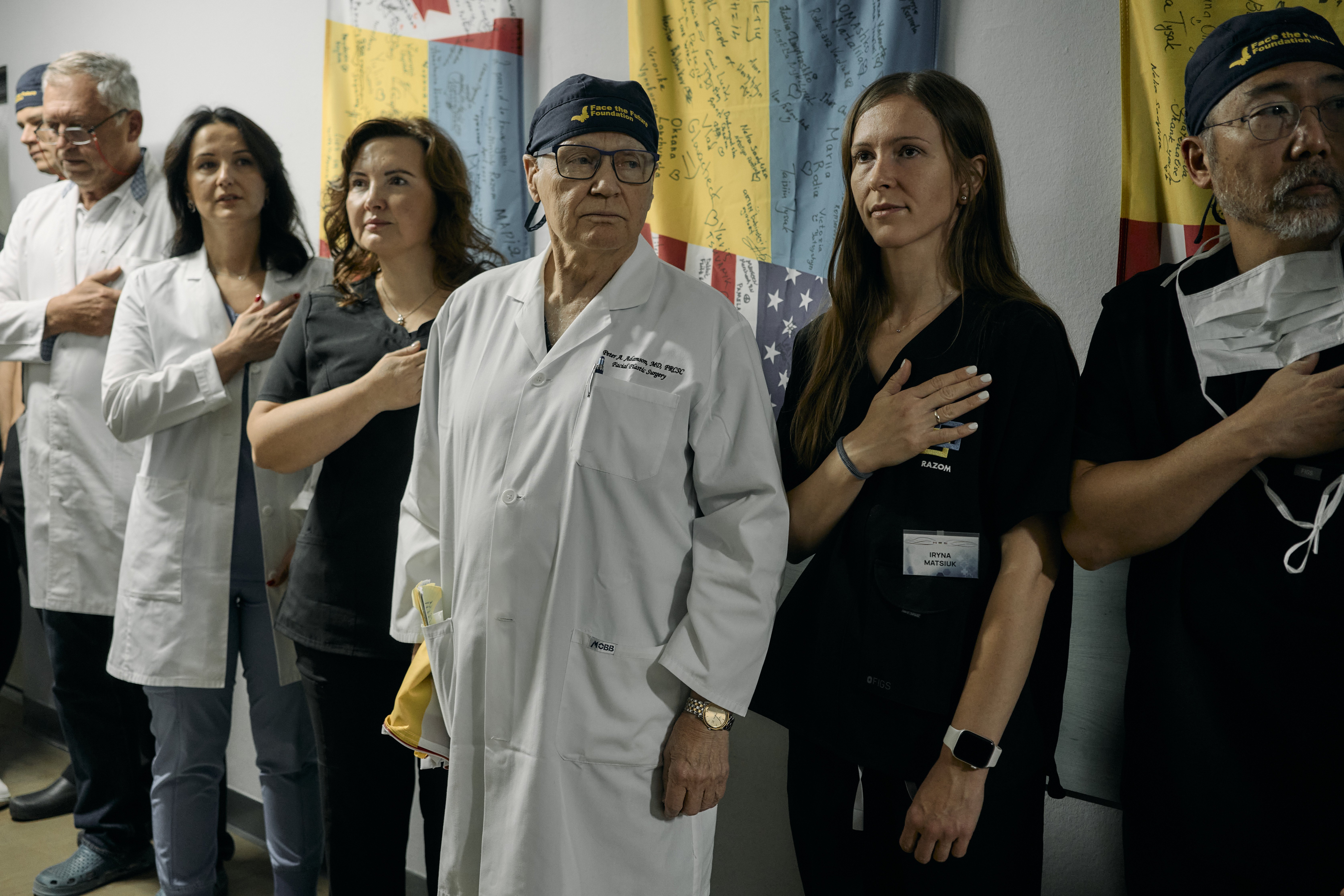 El martes por la mañana, alrededor de las 9:00, todo el personal se reunió en el pasillo de un departamento hospitalario en Ivano-Frankivsk. Entre los trabajadores ucranianos se encontraban canadienses y estadounidenses, quienes juntos atenderían a más de 30 pacientes durante los próximos días, tanto militares como civiles, que han sufrido graves lesiones en la cara y el cuello por minas y explosiones.