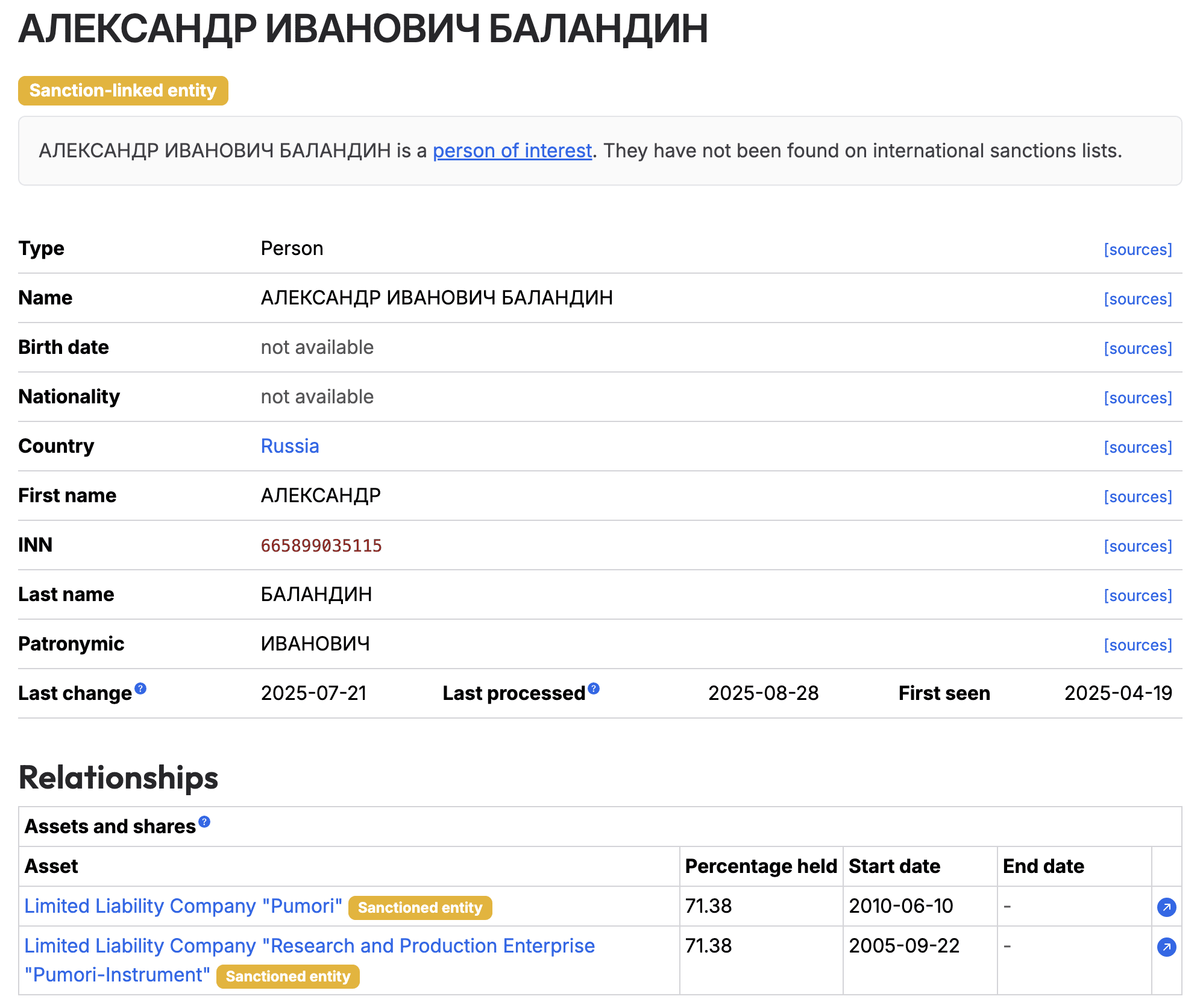 Fuentes abiertas identifican a Aleksandr Ivanovich Balandin como fundador y director de la empresa.