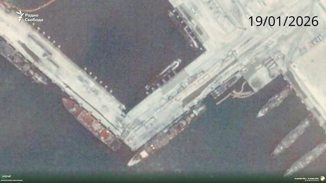 A newly released satellite image of Russia’s Black Sea port of Novorossiysk shows that a Russian submarine targeted by a Ukrainian underwater drone has not moved from its berth more than a month after the strike, casting fresh doubt on Moscow’s claims that the vessel suffered no damage, according to the image, published by journalist Mark Krutov of Radio Free Europe/Radio Liberty on January 19.