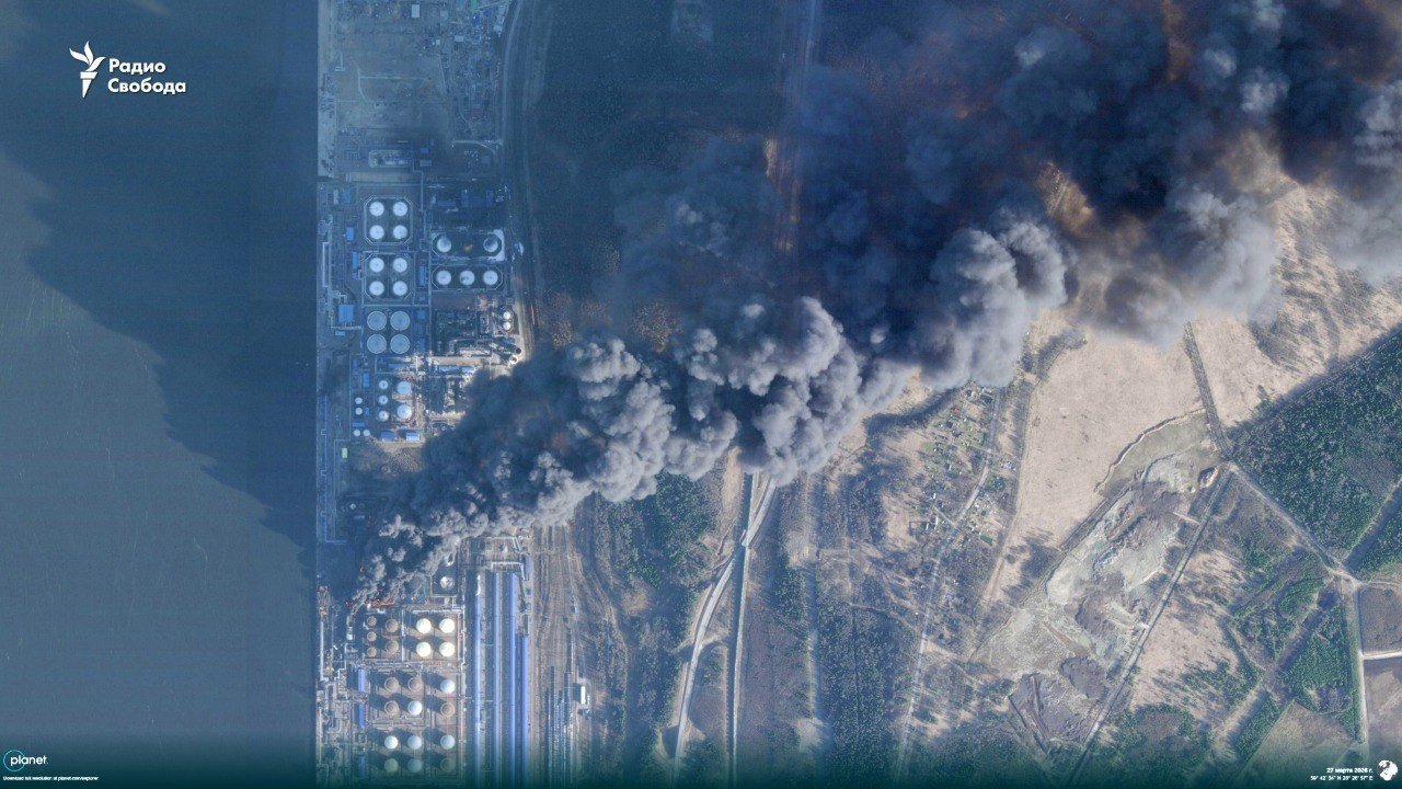 Satellite imagery by Radio Liberty indicates that a fire at the Ust-Luga port intensified again on the morning of March 27 following another drone strike.