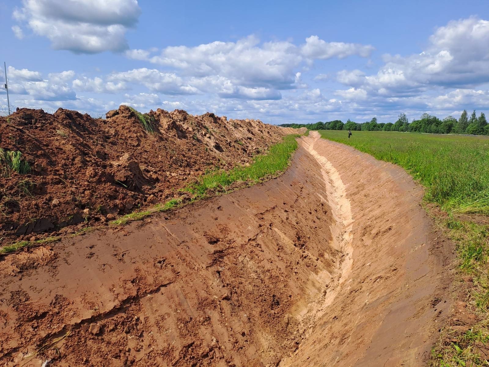In Võru County’s Vinski village, a half-kilometer trench has already been completed. Officials said that while earlier sections were dug outside delay fences, the new design places them inside, alongside additional layered defenses.
