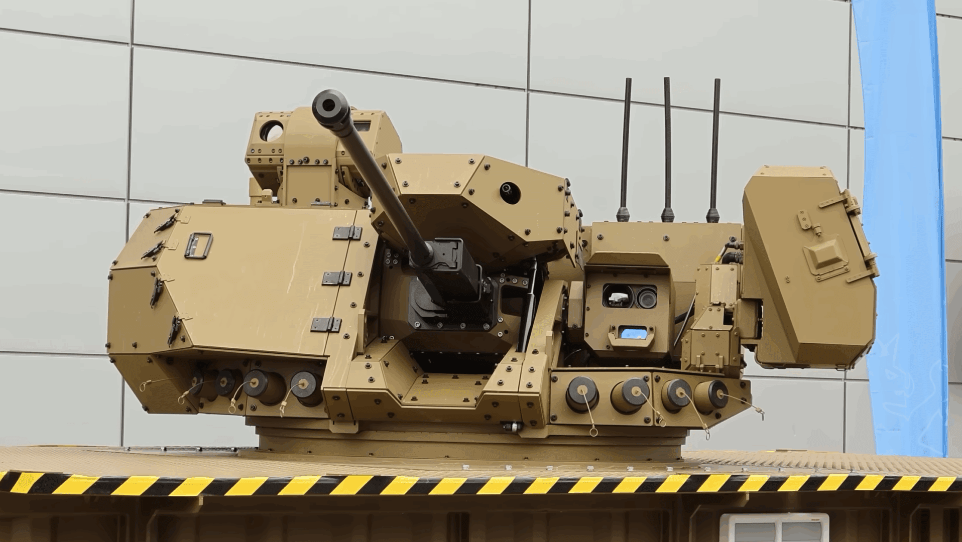 The turret’s dual-feed ammunition system allows rapid switching between types of rounds, including programmable airburst munitions intended for use against drones, the report said.