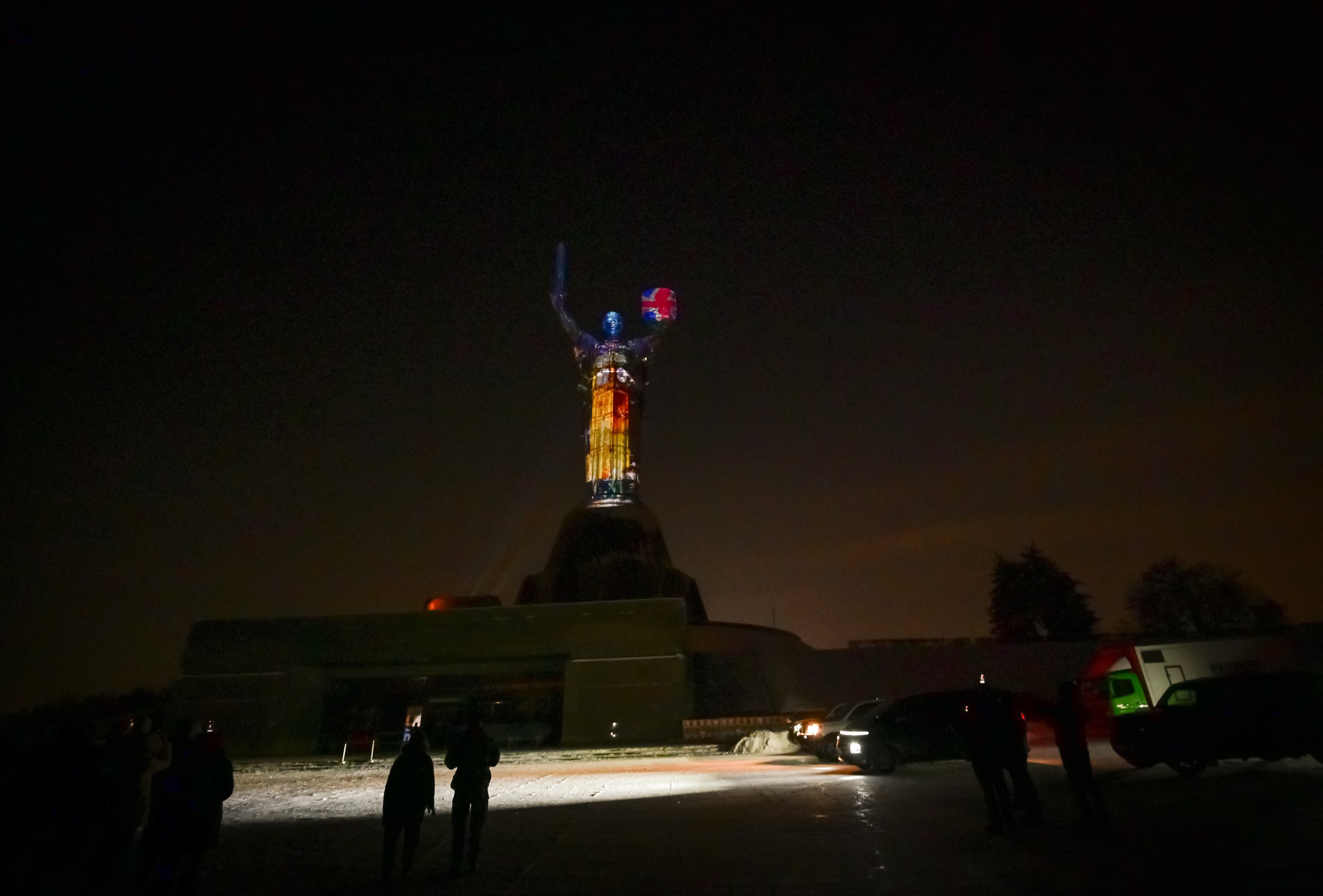Kyiv’s Motherland Monument Lit in UK and Ukraine Colors to Mark 100-Year Partnership