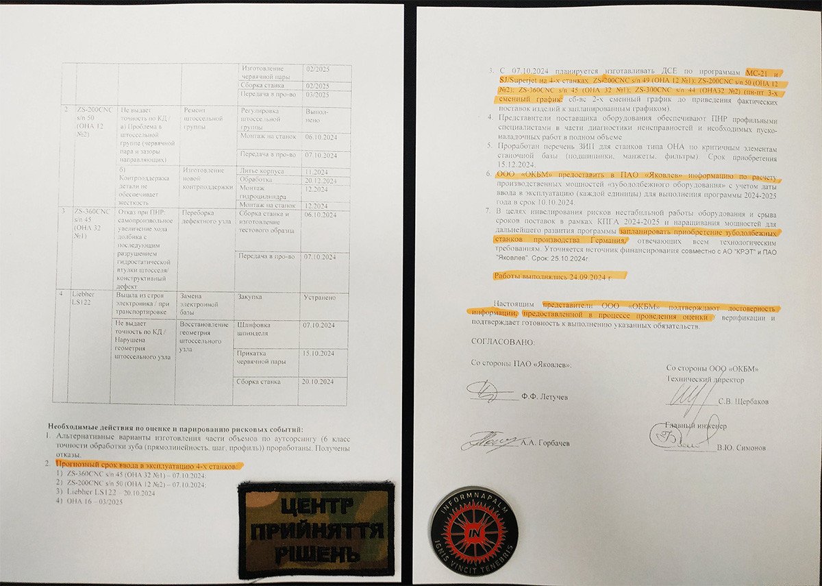 The leaked files include a “Diagnostics Report on Gear-Shaping Equipment,” dated September 24, 2024, from a Russian company working with JSC Yakovlev, part of the United Aircraft Corporation.