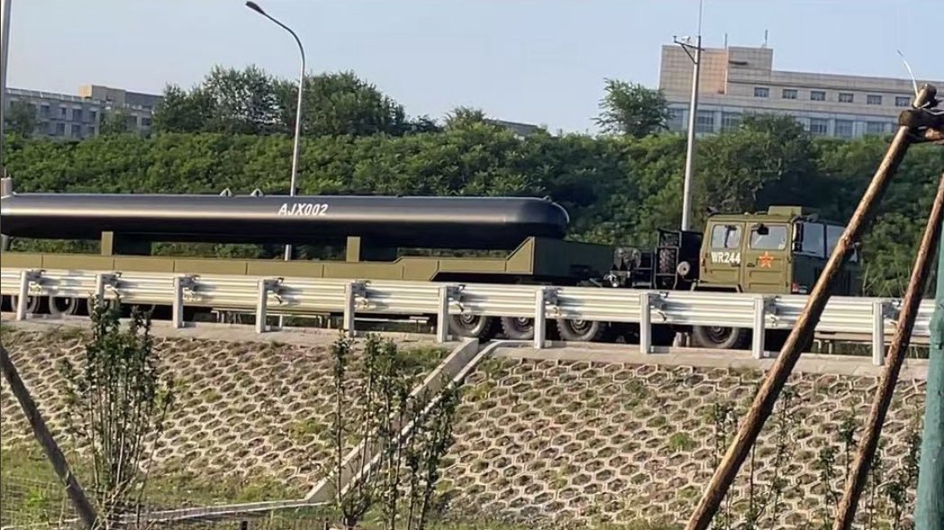 Observers reported at least six such XLUUVs: four units marked AJX002 and two larger designs transported under covers. Based on the trailer sizes, AJX002 is estimated to be 18–20 meters long with a diameter of 1–1.5 meters. The second, larger model features a raised structure on top of the hull that could house satellite communications equipment or sensors.