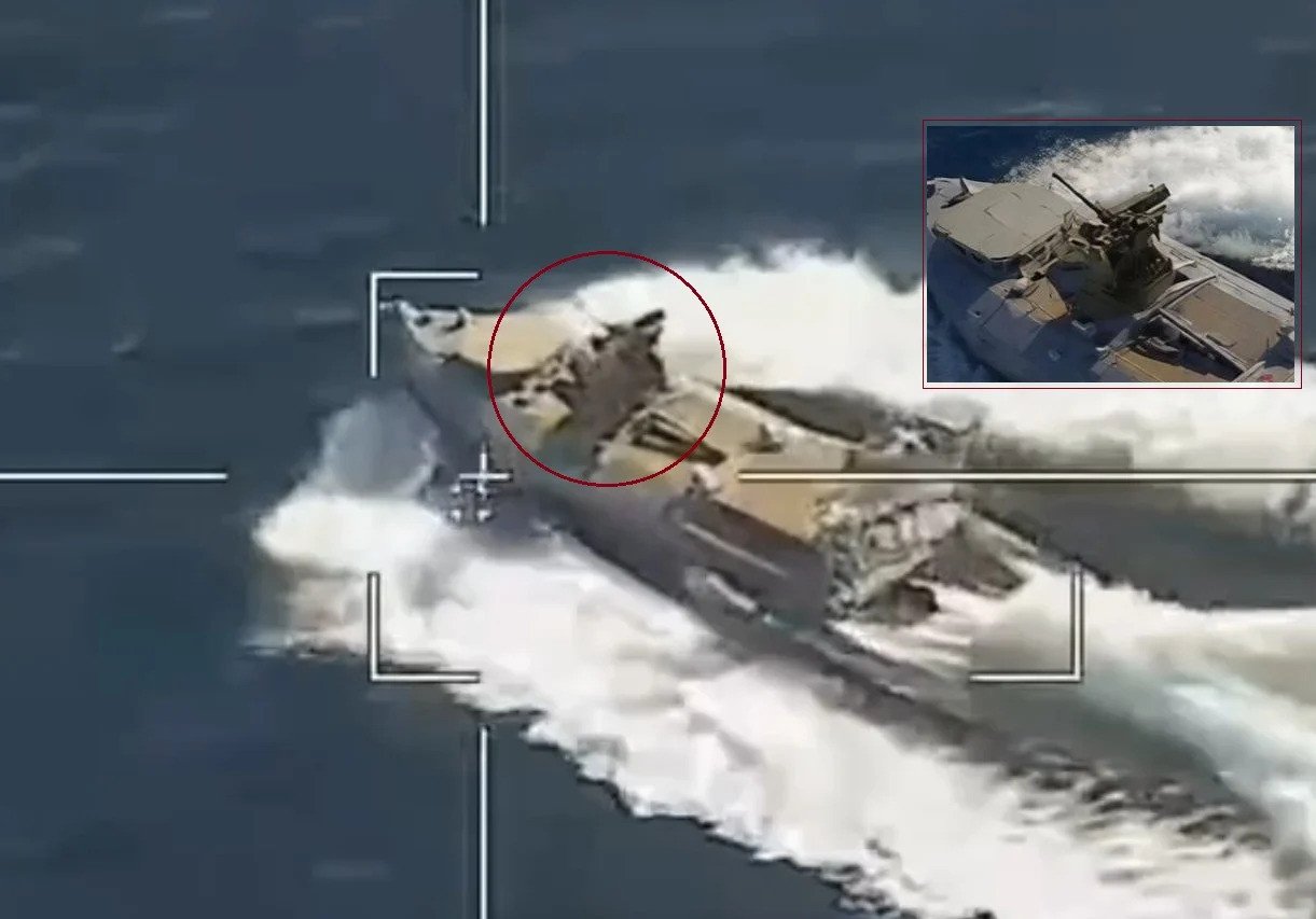 A previously unseen Ukrainian uncrewed surface vessel equipped with a remote-controlled machine gun was identified during a recent attack on Russia’s Novorossiysk naval base.