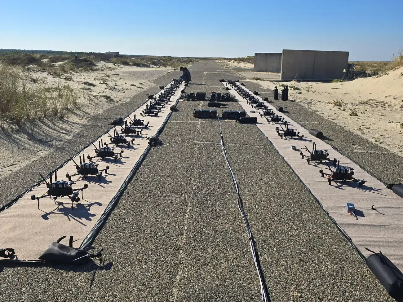 The DWS-1 system consists of 200 FPV-type interceptor drones connected to an AI-powered command system that can coordinate the swarm without relying on GPS. Each drone is equipped with explosives and can operate autonomously or under the control of a single operator managing up to 100 drones at once.