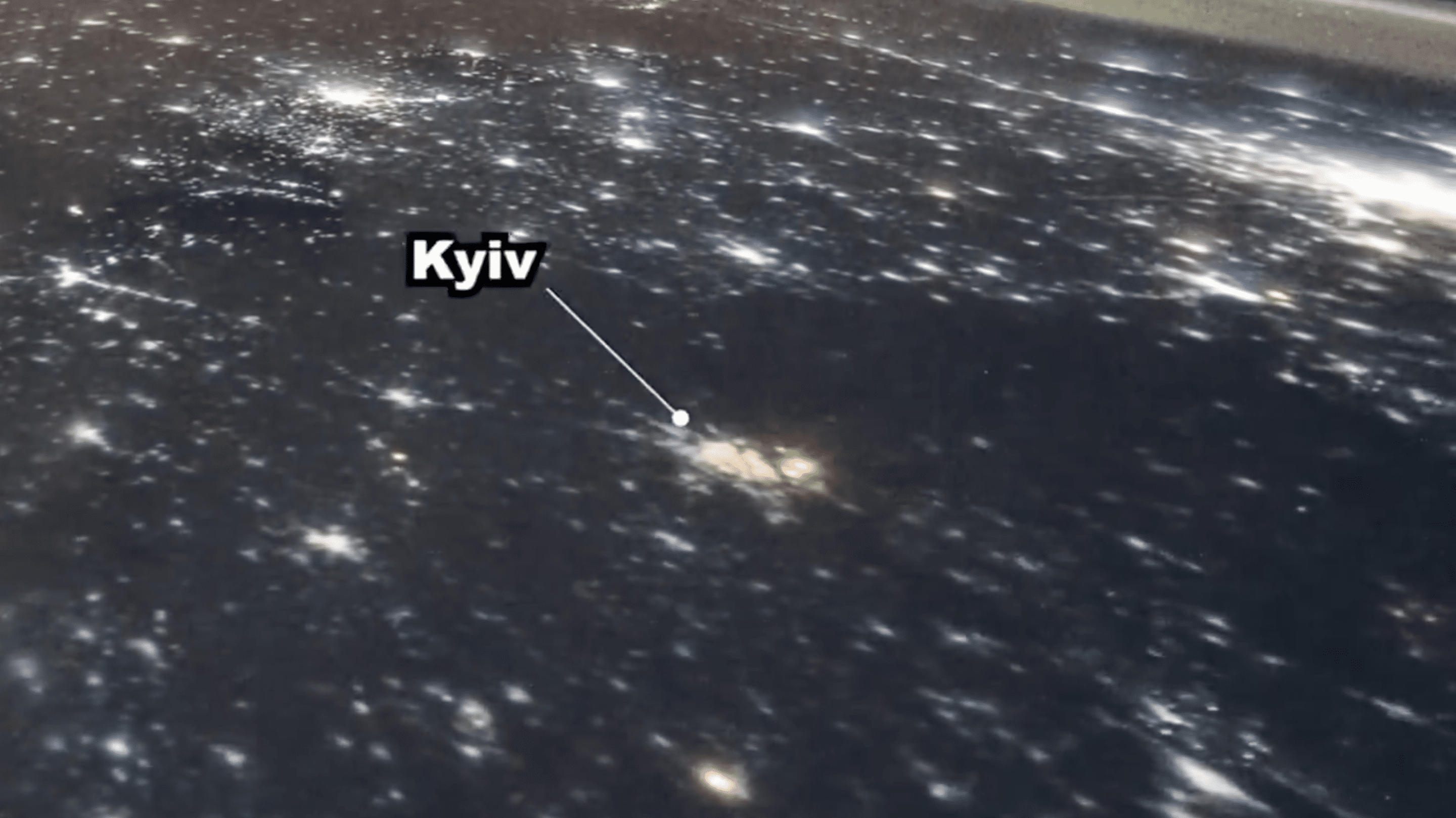 YouTube-канал AstronautiCAST опублікував таймлапс, знятий з борту Міжнародної космічної станції у ніч з 26 на 27 грудня. На компіляції кадрів з камери МКС видно проліт балістичних ракет і роботу ППО столиці та області.