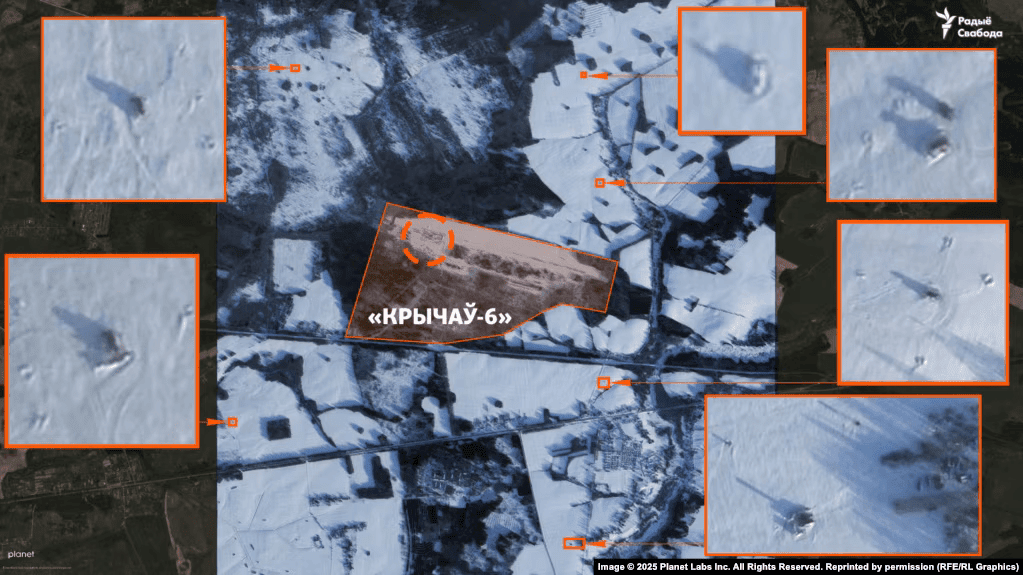 Inside the central military compound, imagery confirms the continued presence of six large vehicles. Their dimensions directly match the Oreshnik hardware showcased by Russian and Belarusian defense ministries in December 2025. Hangar construction to house this strategic equipment remains actively ongoing, according to Radio Liberty/Radio Free Europe.