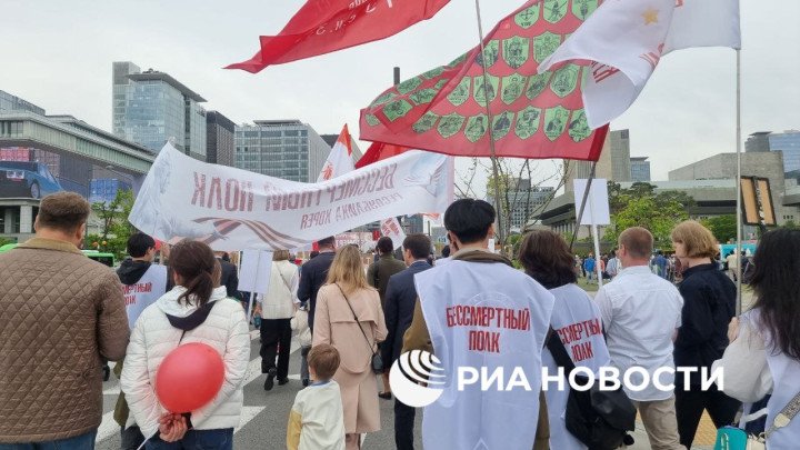 RIA Novosti, the Russian state-owned news agency, reported that on May 5, a “record-breaking Immortal Regiment march” took place in Seoul, South Korea, with more than 500 people joining the event, as noted by a correspondent from RIA Novosti.