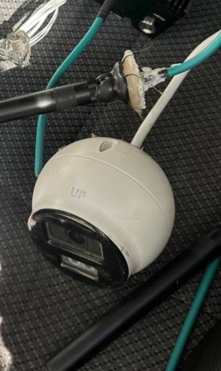 The mounted camera, while not high-grade, resembles those used in standard security surveillance systems.