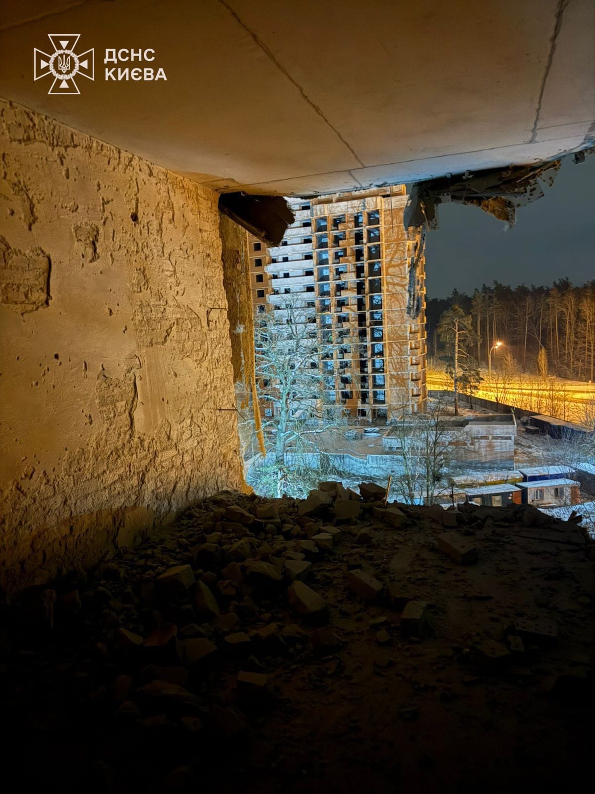 Additional damage across Kyiv included fires and structural damage to residential buildings, garages, and an office complex. Authorities recorded impacts or debris in at least five districts, including Desnianskyi, Dniprovskyi, Darnytskyi, Holosiivskyi, and Solomianskyi.