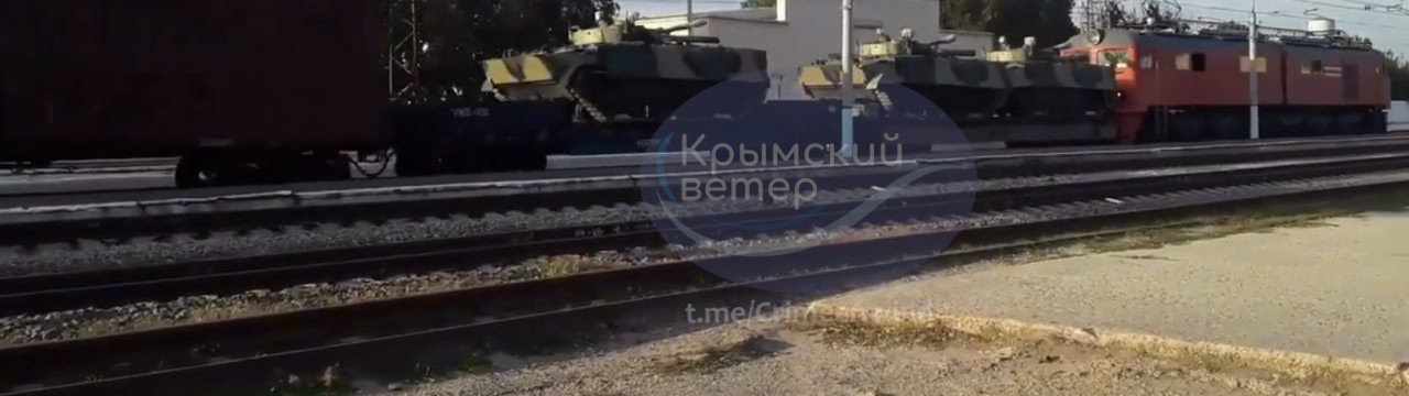 The channel reported that a freight train heading north across Crimea was seen carrying several BMP-3 infantry fighting vehicles, fuel tankers, and a guard carriage.