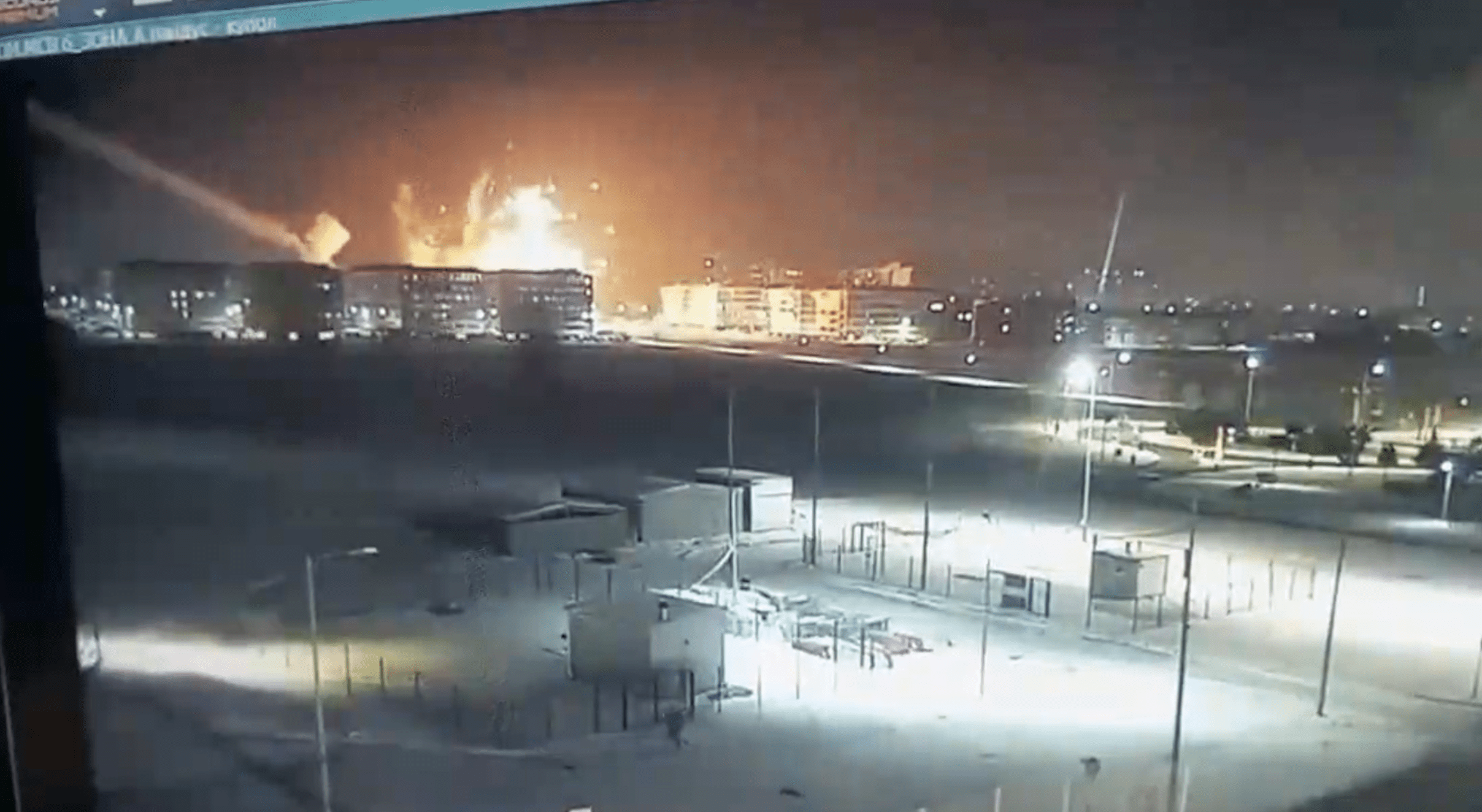 Video and photos from Novaya Adygeya near Krasnodar show what open-source analysts and a Russian military Telegram channel described as a Russian S-300 or S-400 air defense missile veering off course and striking a parking area next to a residential building during an air raid, according to according to eyewitness videos and local reports.