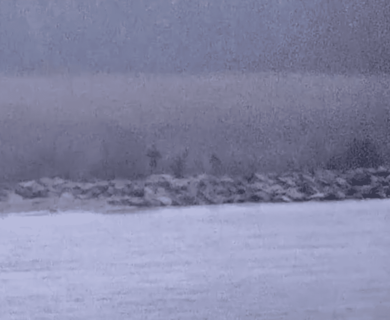 The hovercraft stopped near the pier, and three border guards exited, walking along the pier. During this time, the Russian guards crossed the control line from Russia into Estonia and returned to the Russian side. Afterward, they went back to their hovercraft and crossed over to Russia.