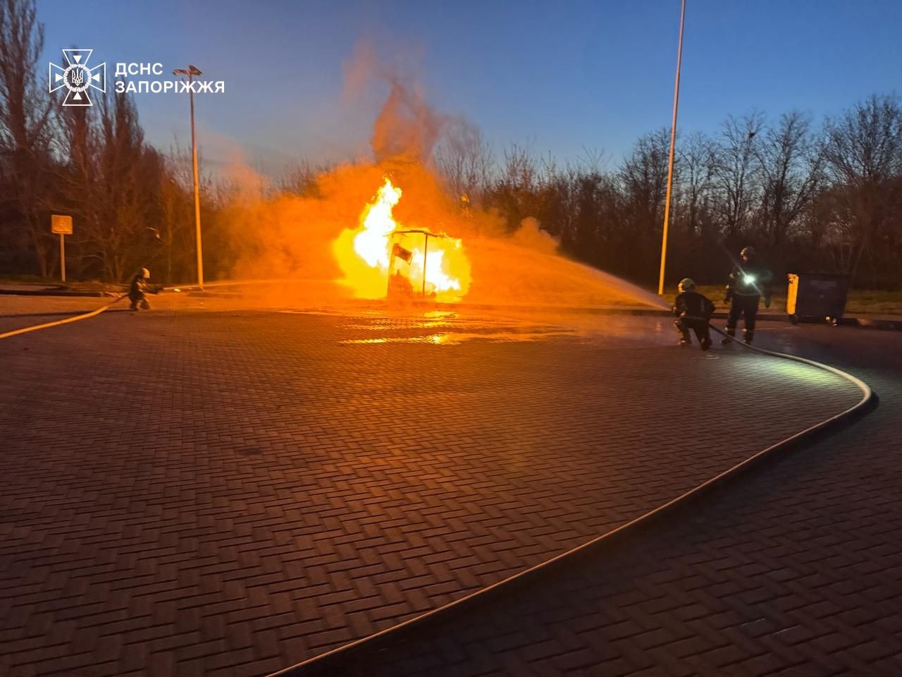 According to Ukraine’s State Emergency Service (SES) in Zaporizhzhia region, two incidents occurred on the morning of April 14 involving unmanned aerial vehicles. One drone reportedly hit a gas module at a civilian fueling station in Zaporizhzhia, igniting a fire over 20 square meters.