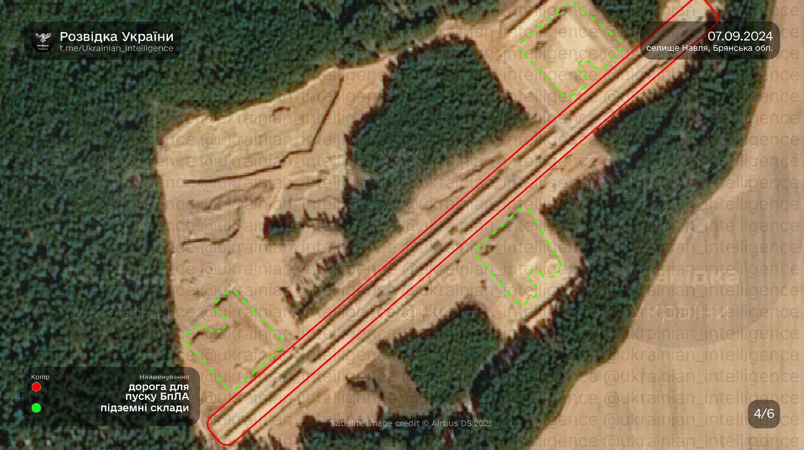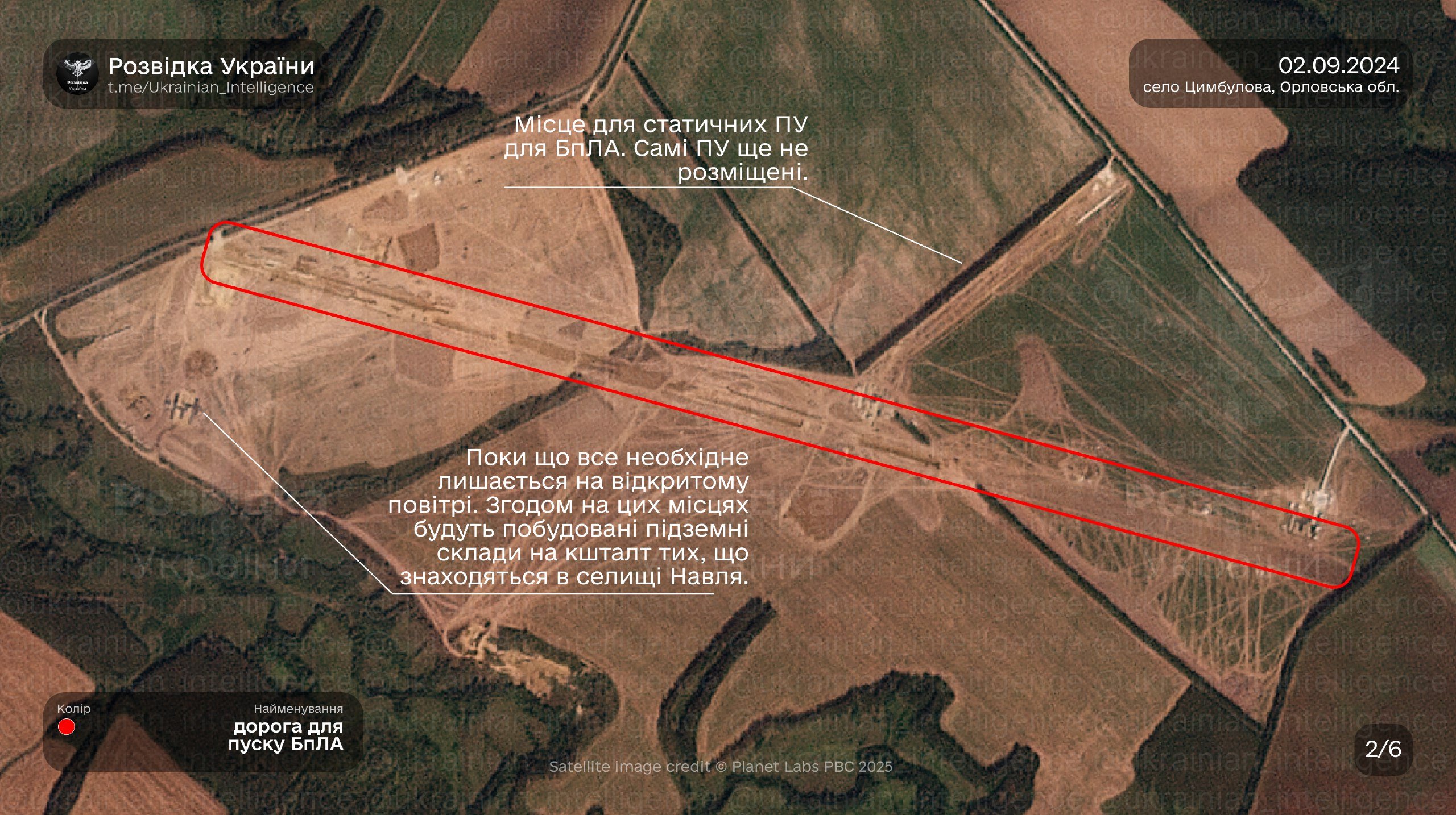The sites are located near the settlements of Navlya, 66 kilometers from the Ukrainian border, and Tsymbulovo, about 176 kilometers away. Both include roads for vehicle-based drone launches, stationary launchers with boosters, shelters, and storage facilities for drones.