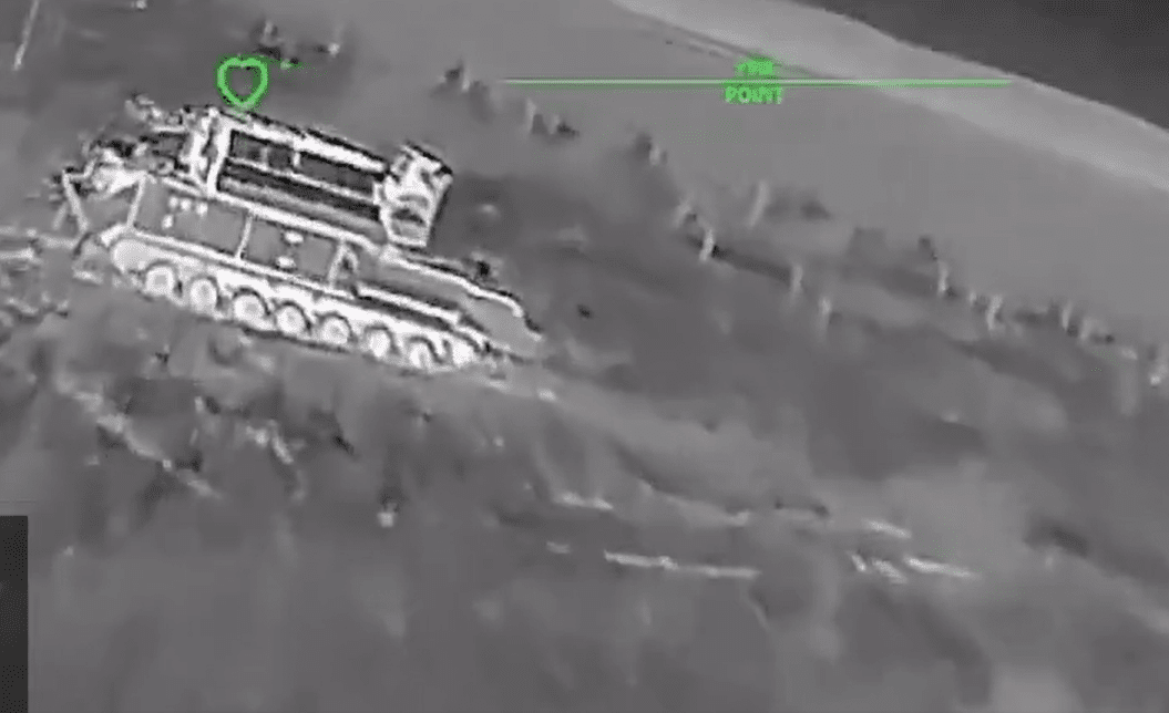 In the video, the Tor-M1 successfully intercepts the first Ukrainian strike drone, followed by a second. However, the system appears to run out of missiles before a third drone reaches its target and destroys the launcher.