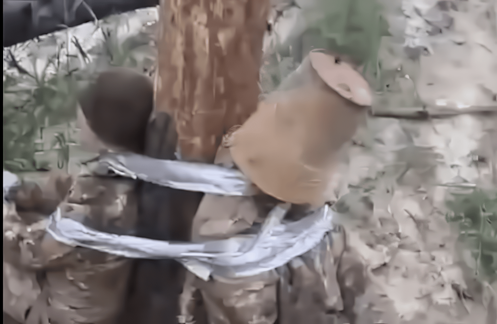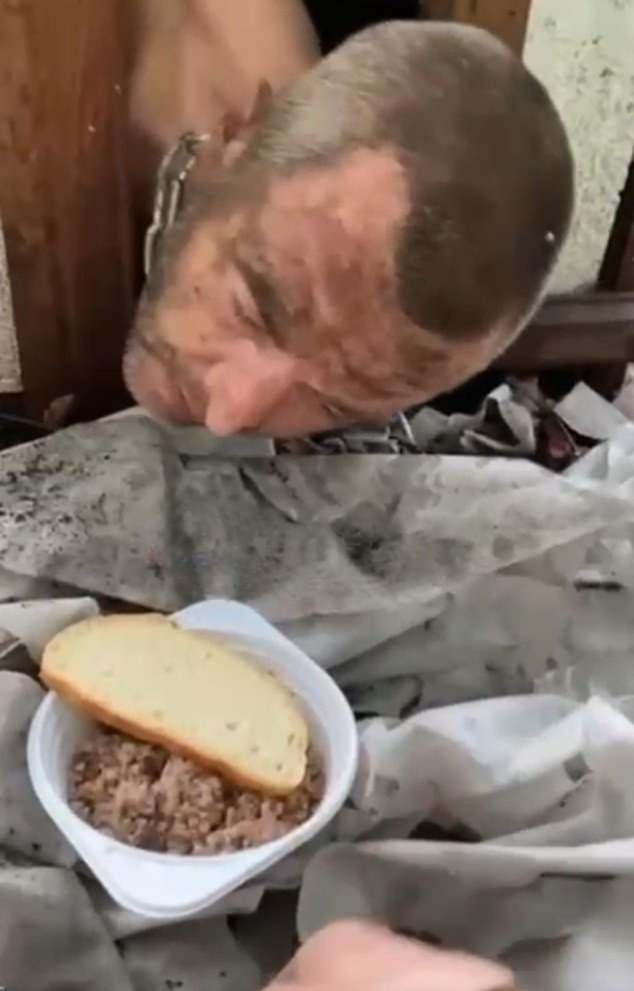 In another, half-naked men are chained to a tree and forced to bark like dogs. The report also described footage of troops surviving on stolen potatoes and muddy water after their own army failed to supply them.