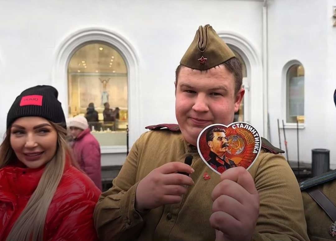 “Participants of the action walked in red caps, jackets with the symbols of the Communist Party of the Russian Federation and Soviet military uniforms, handing out red hearts with portraits of Stalin, Lenin, and other Soviet Union figures to local residents,” Spravdi added.