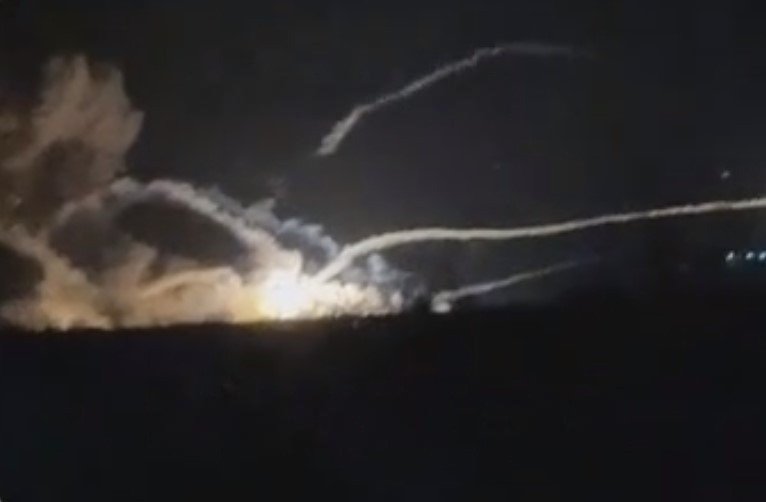 Videos circulating online and footage published by monitoring channels show a large fire at the site followed by a prolonged series of detonations. In the recordings, multiple flashes and sparks appear in the sky as missiles detonate and fragments scatter across the area.
