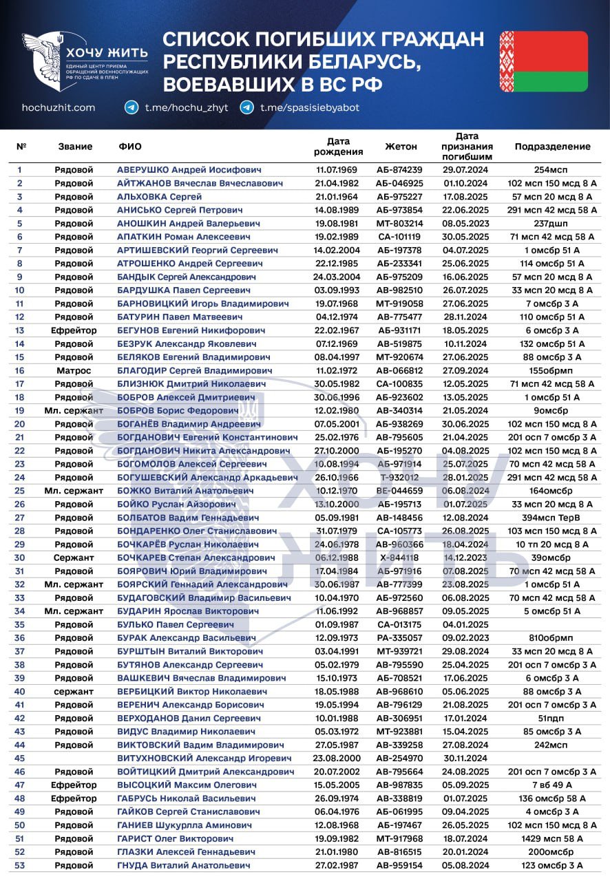 The Ukrainian state initiative “I Want to Live” has published a list of 314 Belarusian citizens killed in the war against Ukraine while fighting on the Russian side, on October 13.