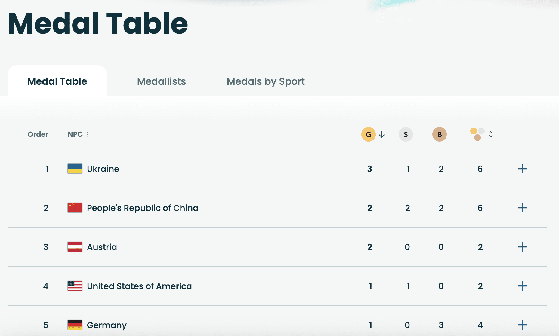According to the Paralympic medal standings following the first day of competition, Ukraine leads the overall table with six medals, ahead of China, which also collected six medals but secured fewer gold medals.