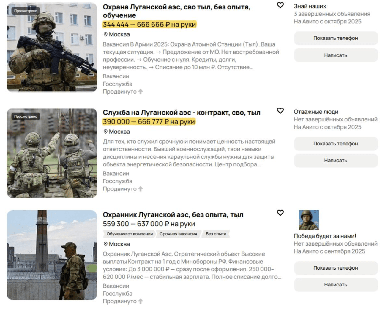 The Russian outlet Verstka reported that multiple listings for guards at the supposed facility appeared on Avito over the past week, with the ads describing standard contract terms for service in Ukraine, including pay starting at about $2,700 and a one-time payment of roughly $19,300 to $51,400.