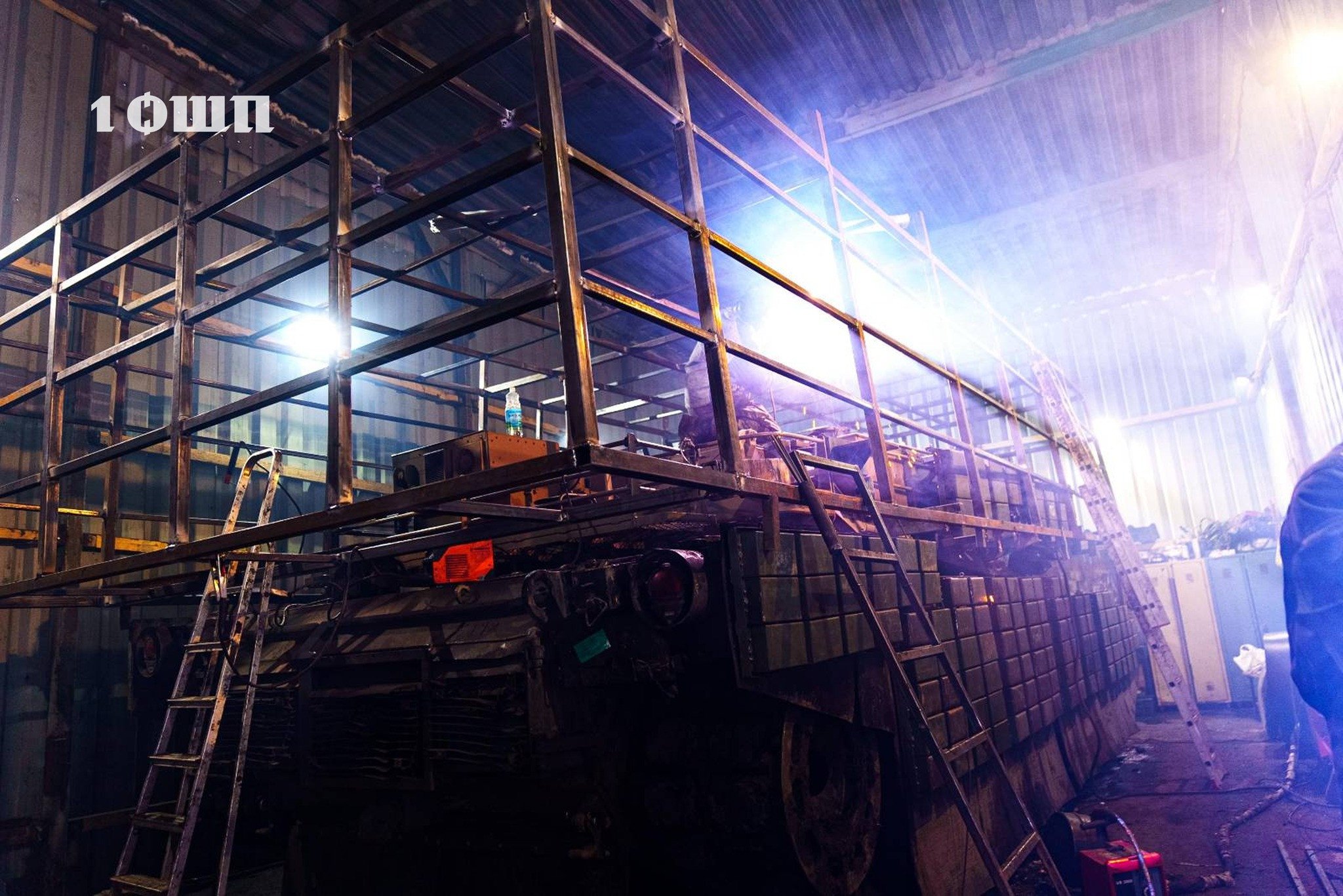 The unit released footage from its workshop showing Abrams tanks being equipped with improvised protective structures, including anti-drone cages and explosive reactive armor, based on materials shared via the regiment’s official channels.