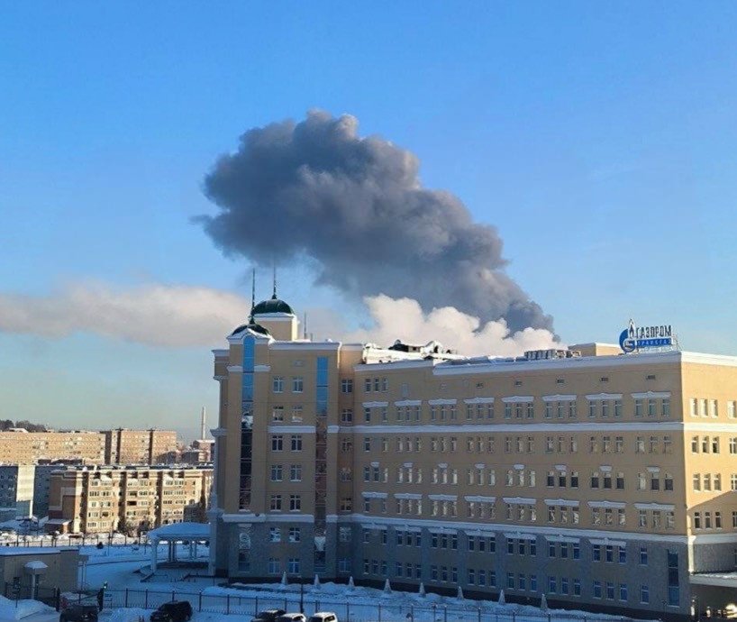 Visible fire and thick plumes of smoke rising from the Lukoil refinery in Russia’s Volgograd region are visible in satellite images circulating on open-source platforms that monitor large-scale fires and industrial incidents, with thermal anomalies and smoke columns marking the impact site following the reported strike.