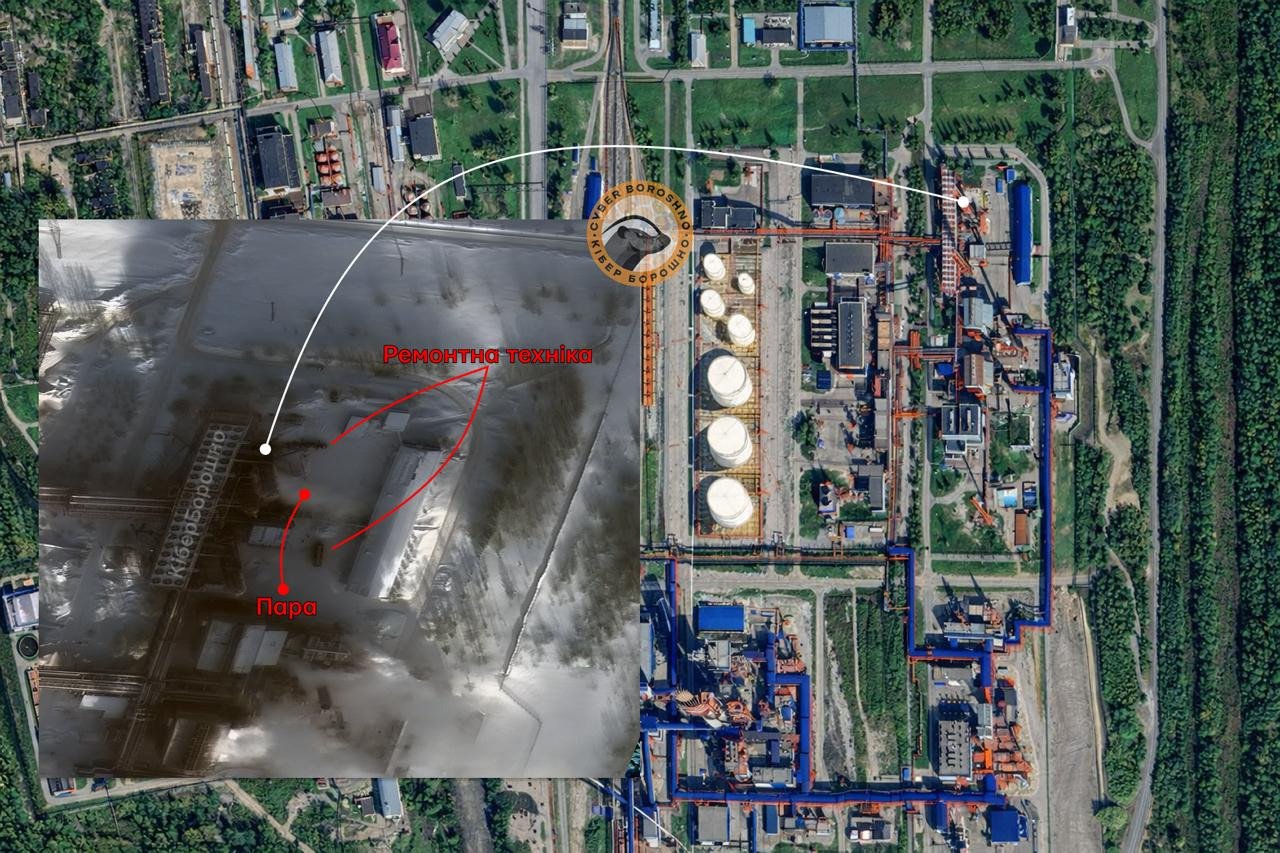 CyberBoroshno published satellite imagery and on-site photos indicating ongoing repair efforts at the facility, including the use of heavy lifting equipment. Visual materials also show vapor emissions from the affected installation, suggesting disruption to the processing unit.