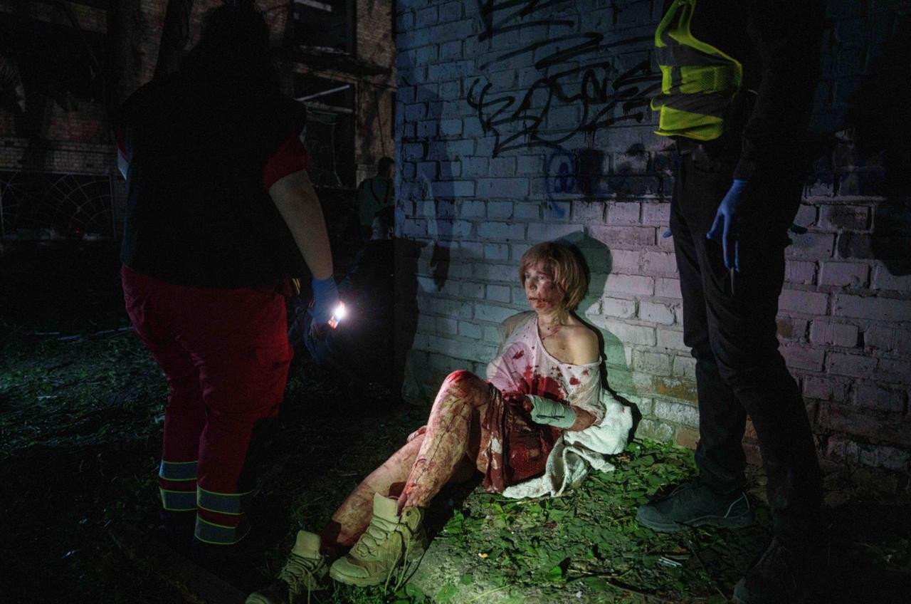 His winning photograph features a 65-year-old woman from Kyiv sitting near her home after a missile destroyed a building across the street.
